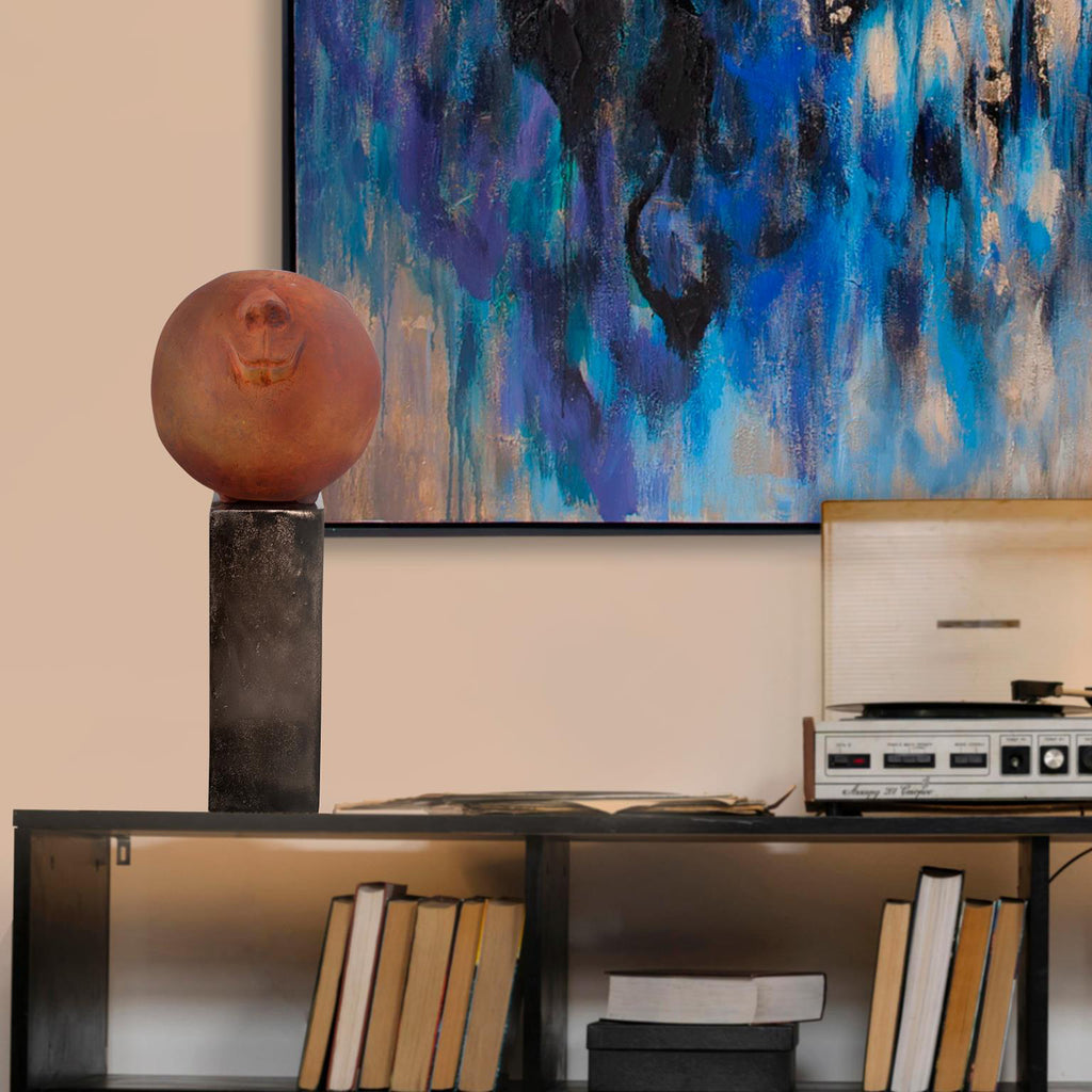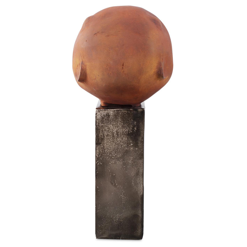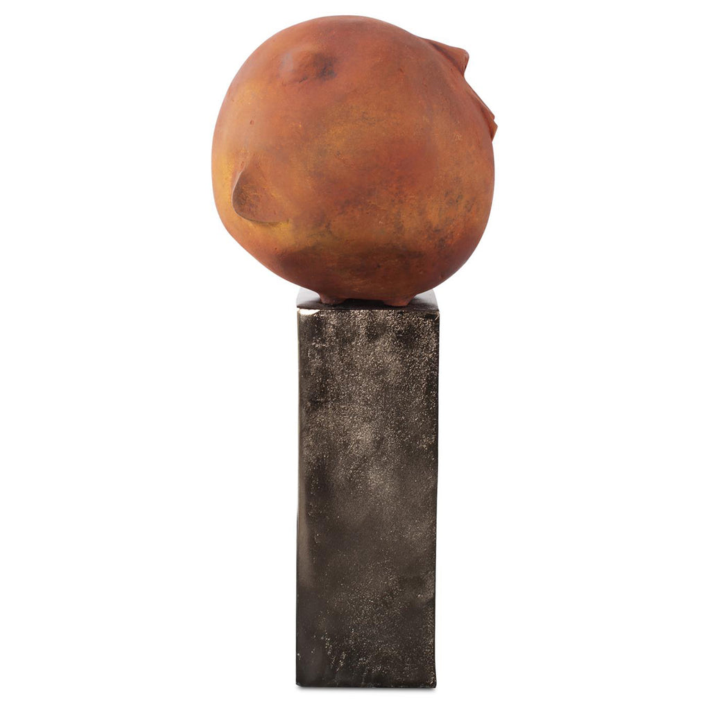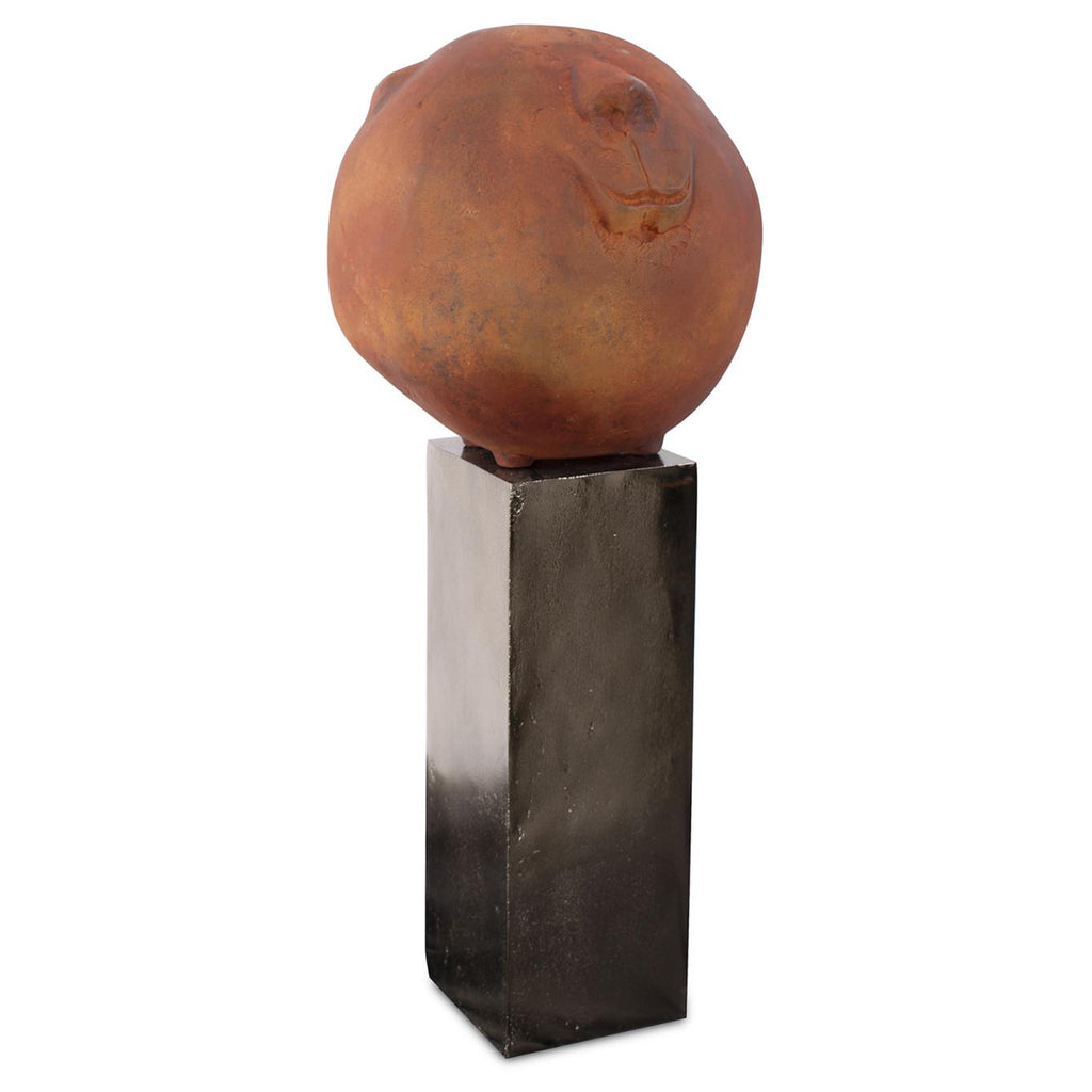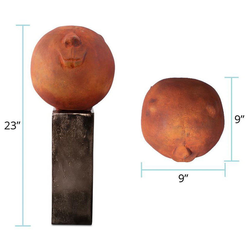 Discover the whimsical charm of Mr. Wilfred, an artful creation that infuses character and personality into your decor. This unique piece features a round terracotta ball adorned with the playful depiction of a face, complete with a nose and lips, adding a delightful touch of anthropomorphic elegance. Perched upon an aluminum pillar, this intriguing sculpture transforms into a captivating focal point that sparks conversation and invites creativity.
