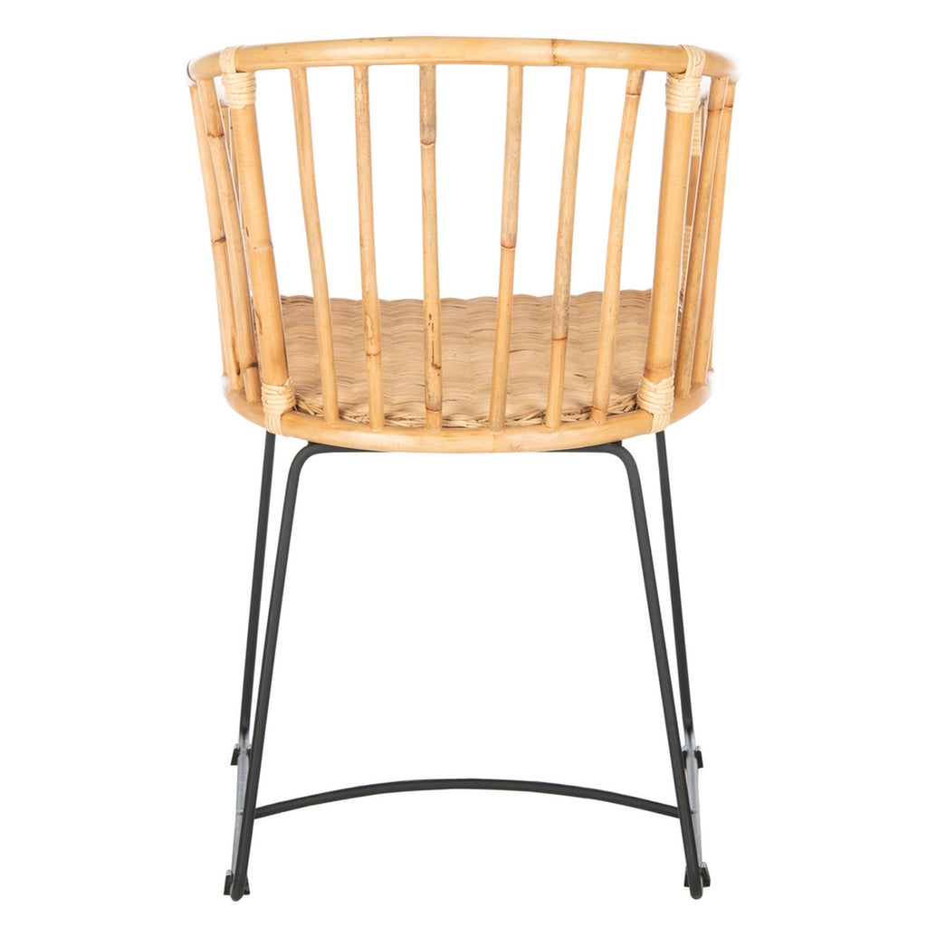 This contemporary Nebo rattan barrel dining chair is the natural choice to instantly upgrade any dining room. Designed to highlight its beautiful rattan texture, its barrel-style back offers a blend of comfort and style. Black metal legs give it a mod edge.