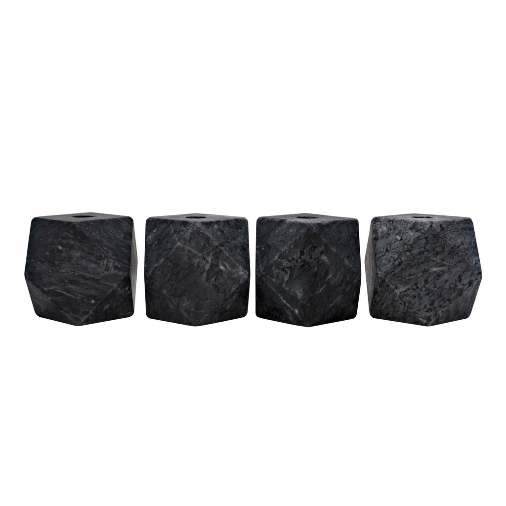 Perfect for showcasing your favorite candles, this Noir candleholder helps set an inviting mood to your living room or bedroom. Modern in style, this chic accent delights atop a mantle or table. These simple yet sophisticated candleholders have been hand-carved of solid black or white marble. Sized for use with traditional taper candles and sold in sets of four. No two pieces of stone, and therefore no candle stands, will be identical.