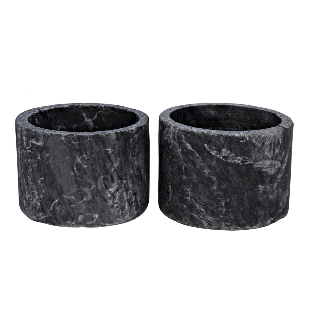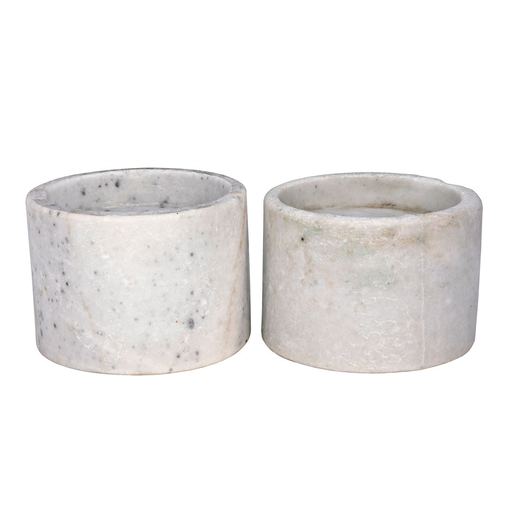 Perfect for showcasing your favorite candles, this Noir candleholder helps set an inviting mood to your living room or bedroom. Modern in style, this chic accent delights atop a mantle or table. These simple yet sophisticated candleholders have been hand-carved of solid black or white marble. Sized for use with traditional pillar candles and sold in sets of two. No two pieces of stone, and therefore no candle stands, will be identical.