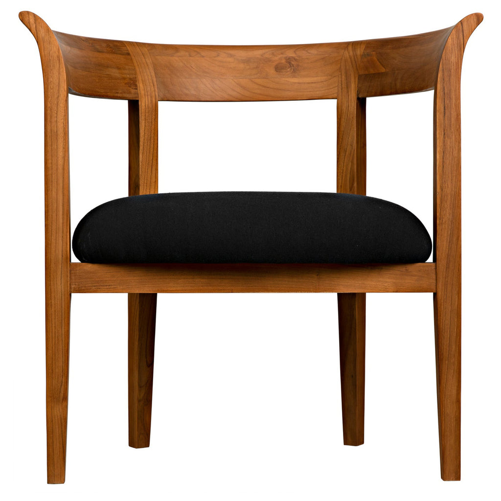 Natural teak forms the arms and base of this striking club chair. Its softly curved wood back and sides are given an extra touch of softness with a thick black cotton seat. Handcrafted and finished.