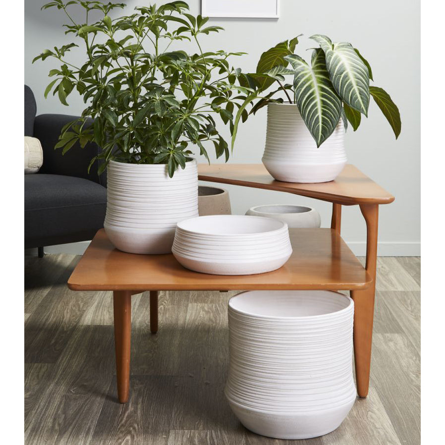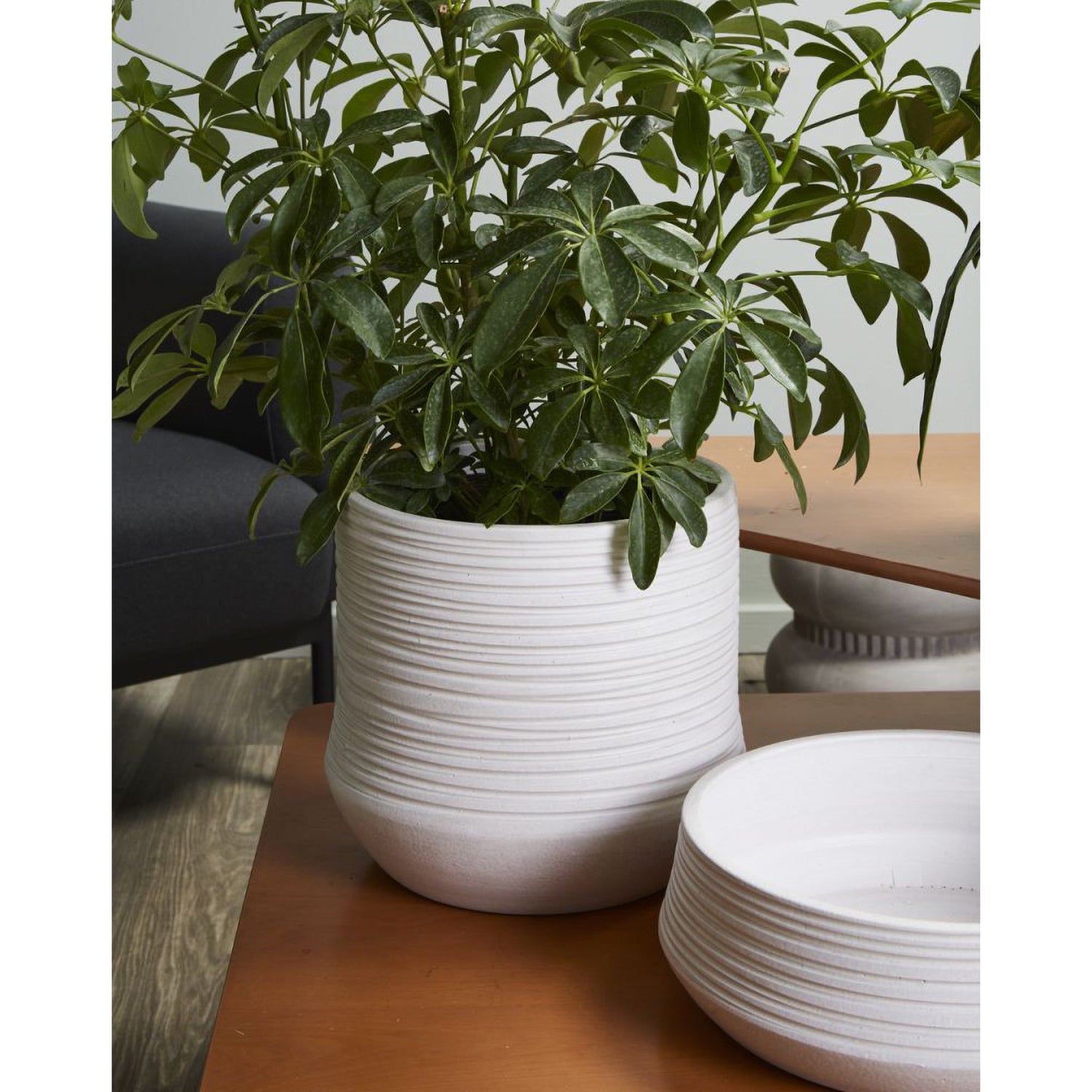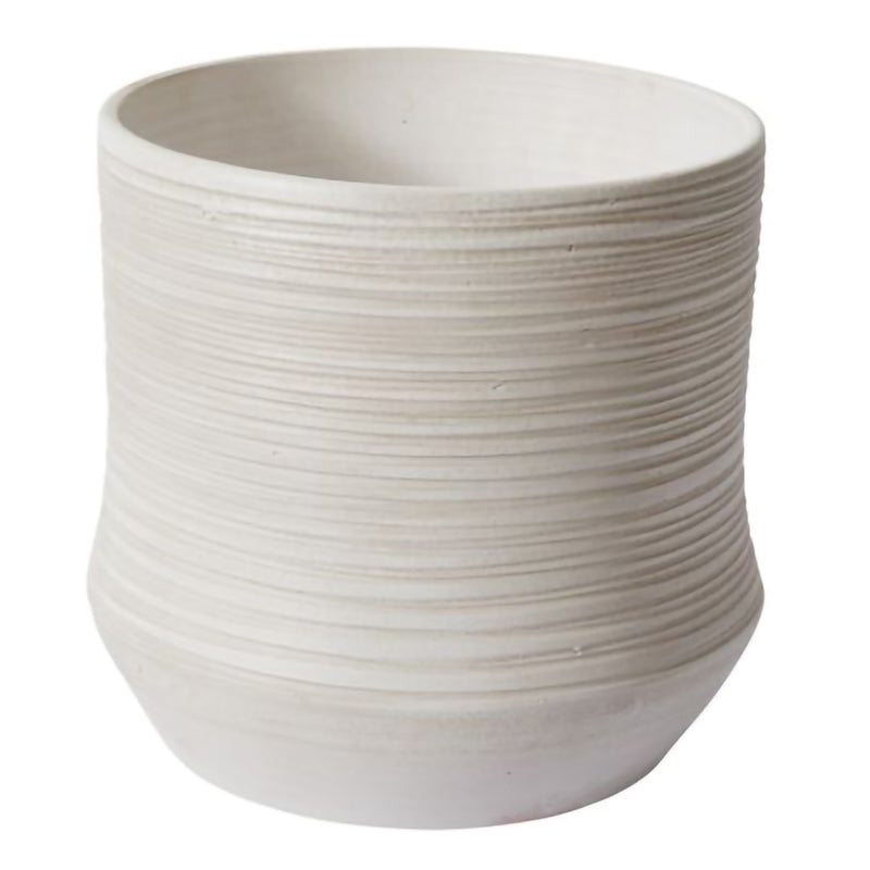 Add an organic finish & textured design to the home with clean & classic Offshore Pot, made in Portugal. With ribbed variations in surface texture, a slight taper in the middle, & an angled base, this white ceramic indoor pot is ideal for a drop-in plant & gives decor a modern lift, whether displayed on the floor or a tabletop.