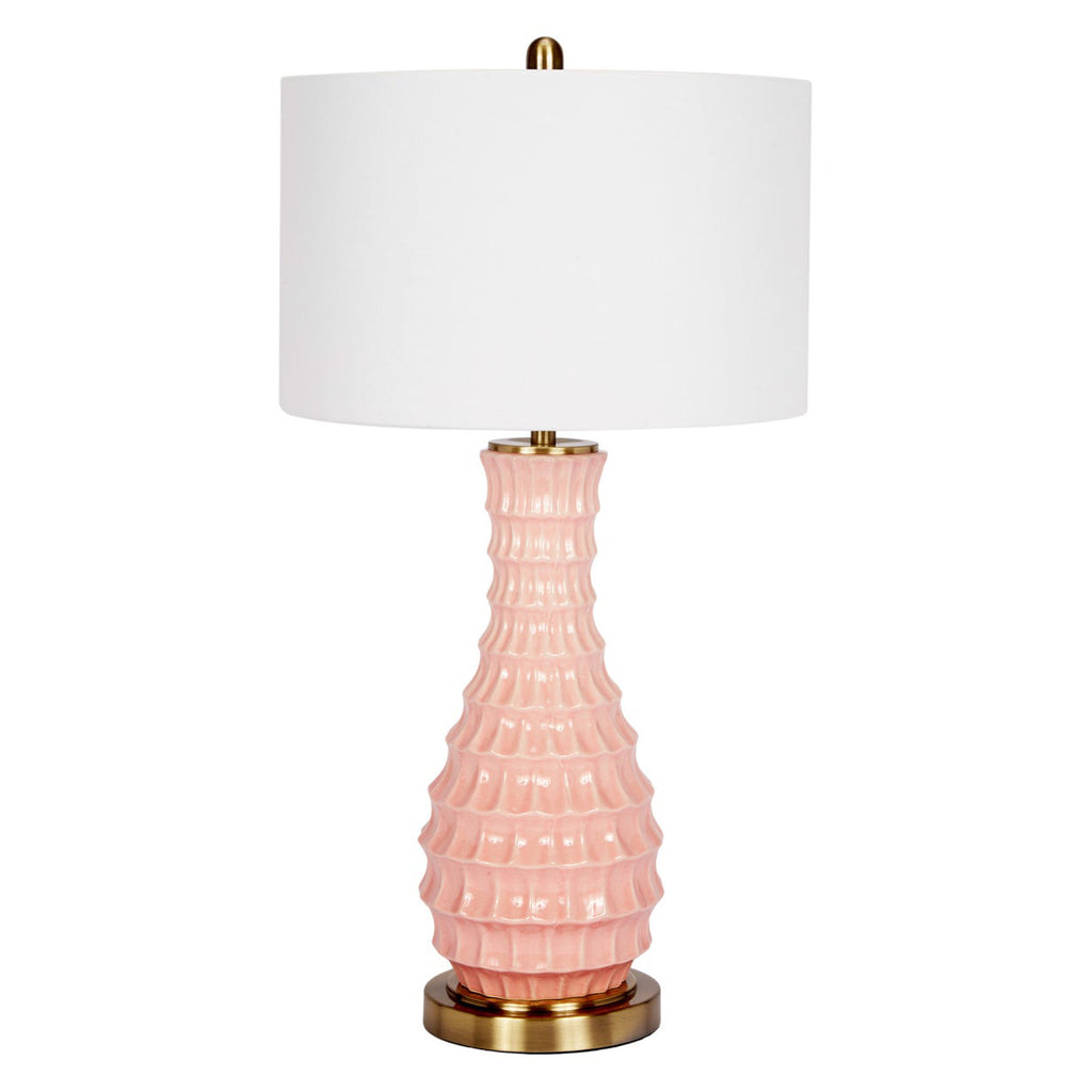 The focus of Old World Design is to fill the void in the lighting and home accessory market with high design and high-quality products. Each exclusive finish is hand applied to produce a high-end look with exceptional value. Zara blush ceramic table lamp with gold base and white linen shade.