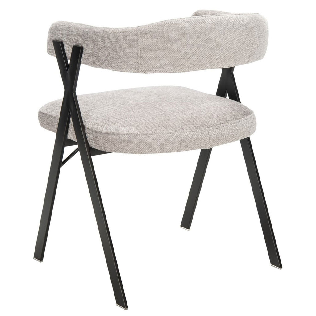 Industrial chic style gets a soft, contemporary twist in chenille dining chair. Izzy’s black geometric frame beautifully complements the smooth curves of an open back and plush grey viscose blend upholstery. A chic statement in any modern dining room.