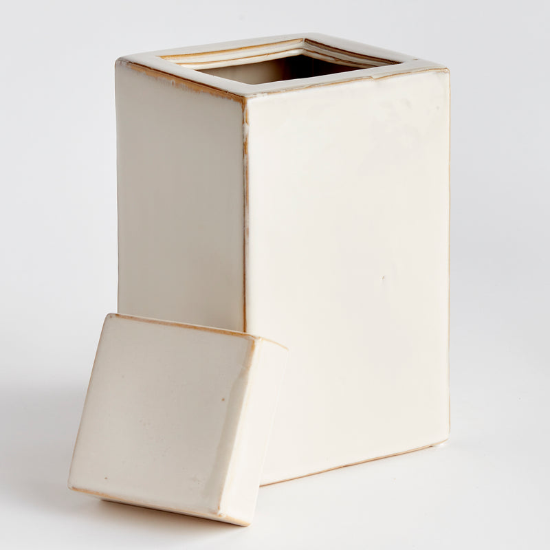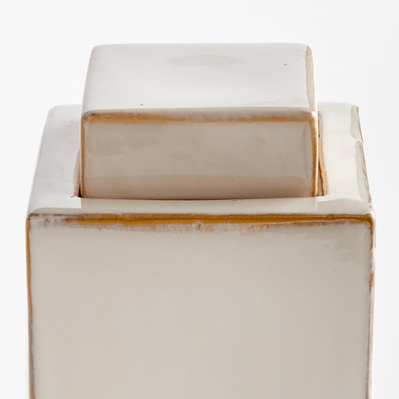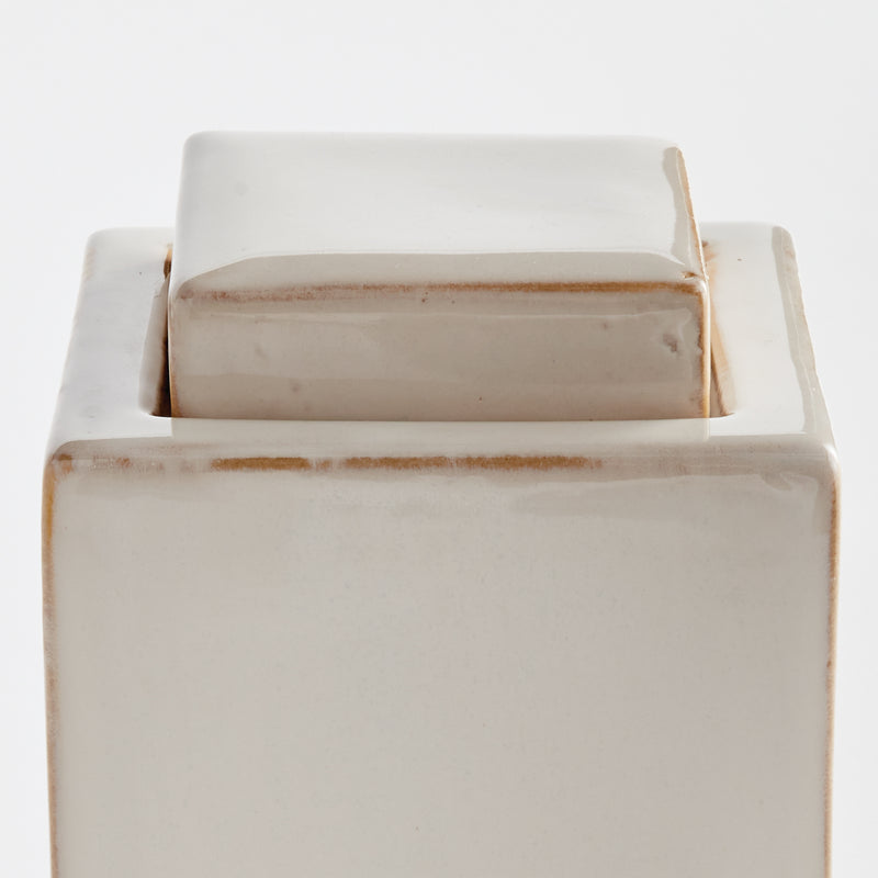 With its sleek lines, contemporary design and reactive glaze, this lidded jar is perfect for both modern and traditional settings. The fitted decorative top ensures secure storage, making it not just a work of art, but also a practical addition to your home. Elevate your decor with this statement piece and enjoy the timelessness of artisanal pottery.