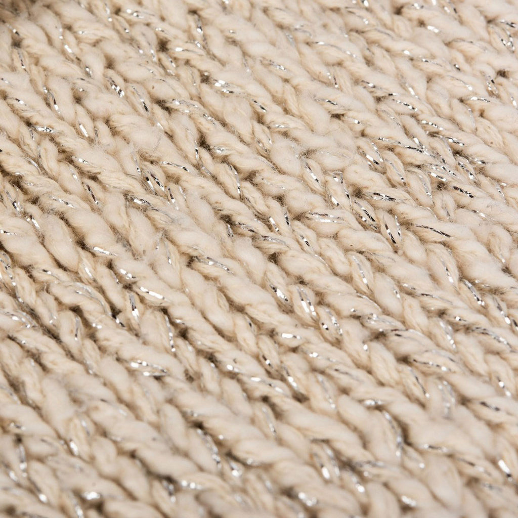 Blending the coziness of your favorite knit sweater with shimmering details, this knit throw elevates any décor with comfort and style. It is knit using soft cotton yarns and silver lurex highlights, adding a touch of sophistication to warm, relaxing décor.