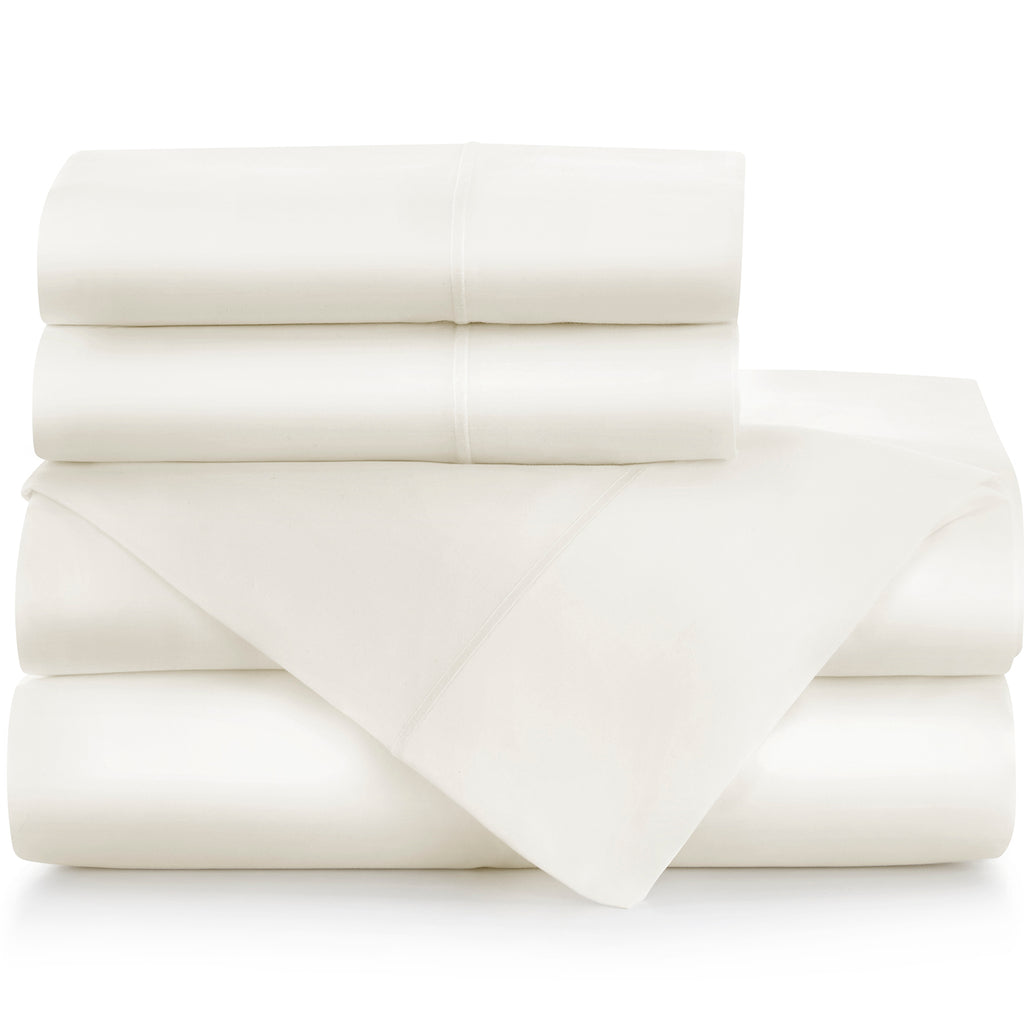Now in an ivory base cloth with tone-on-tone embroidered satin stitch, Boutique is a crisp, breathable percale sheeting and will give you a great night's sleep for years to come. Available in duvet covers, shams, sheet sets, and individually in flat sheets, fitted sheets and pillowcases.