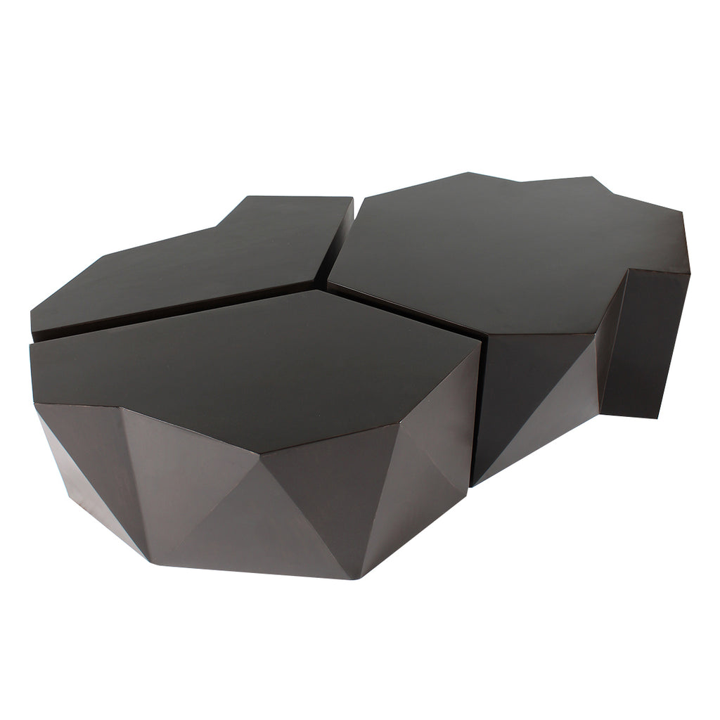This 3-piece Peninsula Home Coffee table allows for it to be separated and used as small accent tables, as well as a unit that corks as a larger table. The Hudson coffee table is a work of art in itself. Defined by its geometric shape, the refined finish provides material for conversation in your favorite living room. Eclectic and transitional it will work in rooms that include art pieces a comfortable sofa and plenty of intriguing objects.