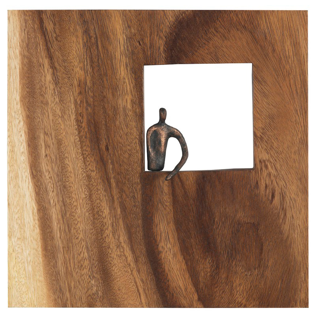 The clean lines of the Posing Figure Square Wall Decor make this warm piece of decorative wall art a perfect accent for contemporary, modern farmhouse, and mid-century modern interiors. Abstractly rendered in metal in a bronze finish, the slim figure adds a whimsical accent to the reclaimed wood frame that also brings a textural appeal to a room. Powerful on its own, this piece of art can be combined with five other abstract figures, each playing its part within the cutout in the square wood wall plate.
