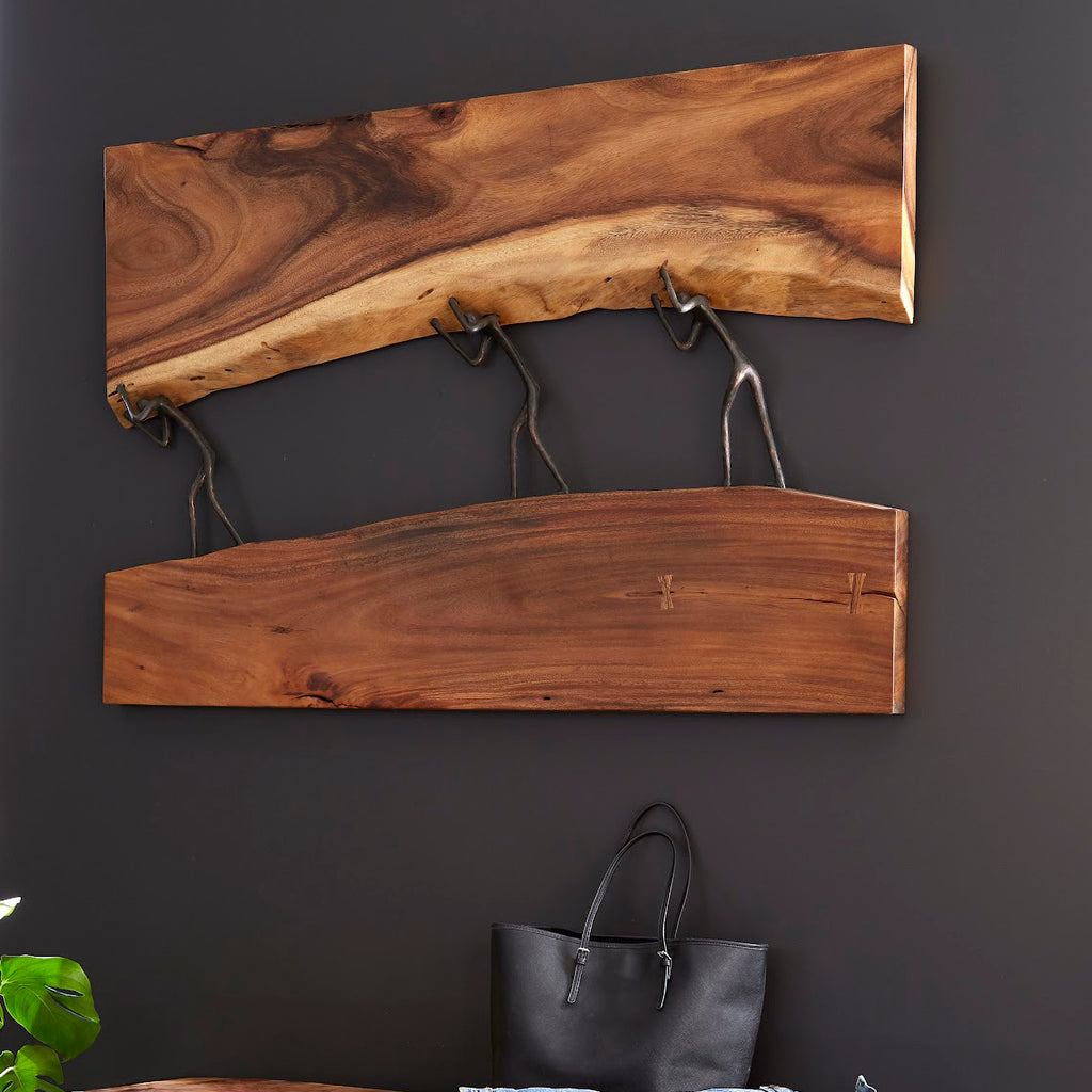 • Crafted from natural wood, there may be organic variations in the form of these wall pieces. Variations may include cracks, divots or imperfect edges.