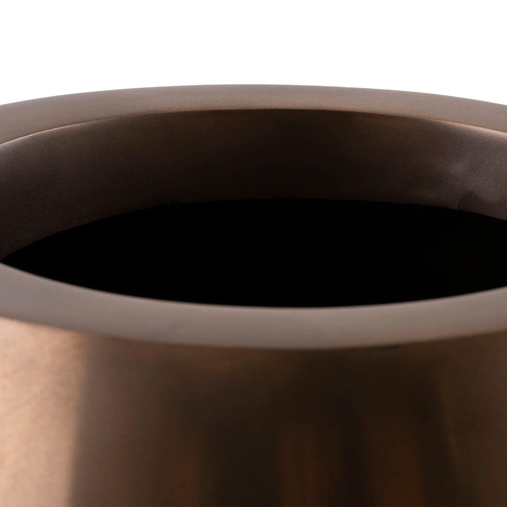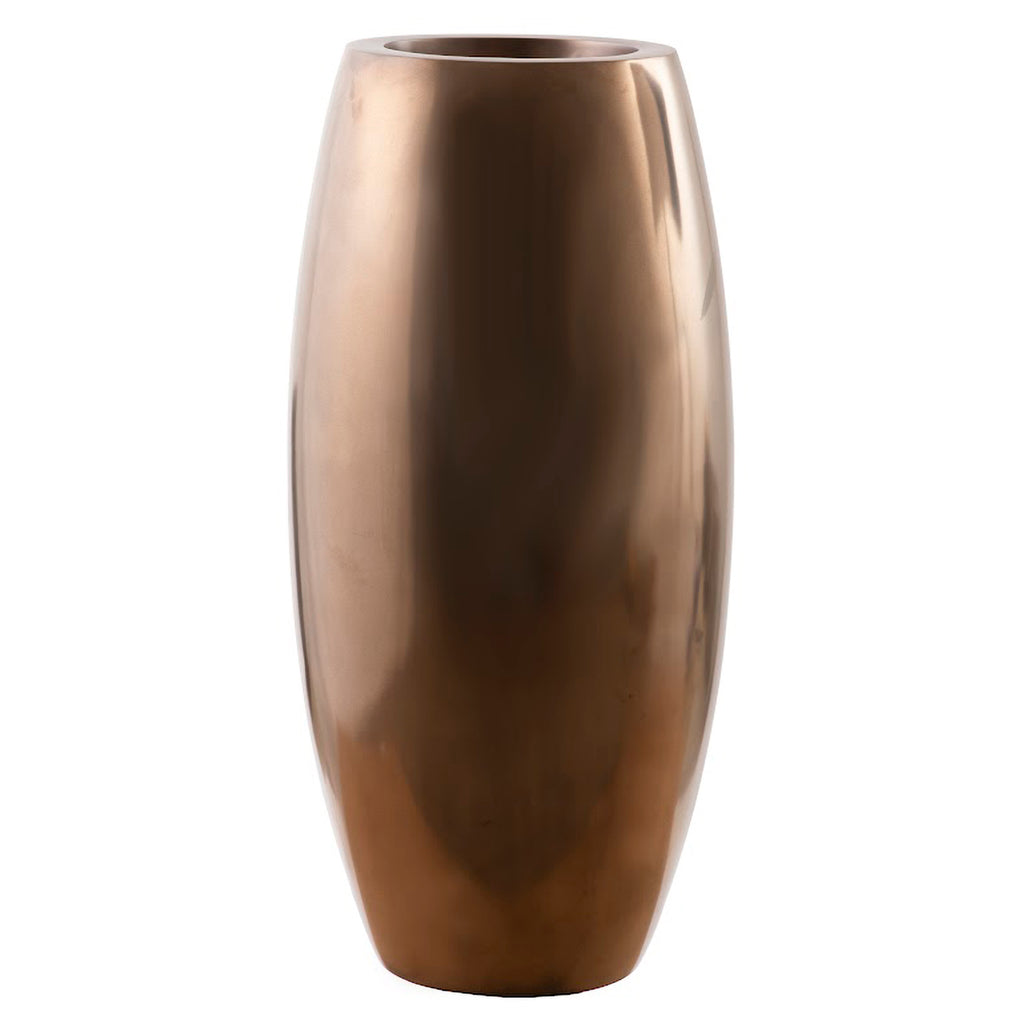 The metallic finish on the Elonga Polished Planter convinces the eye that this tall planter with contemporary lines is made of metal but it's fashioned from composite, which talented finish artisans have given a brilliant sheen. This means it will far outlast any planter made from a material that could rust.