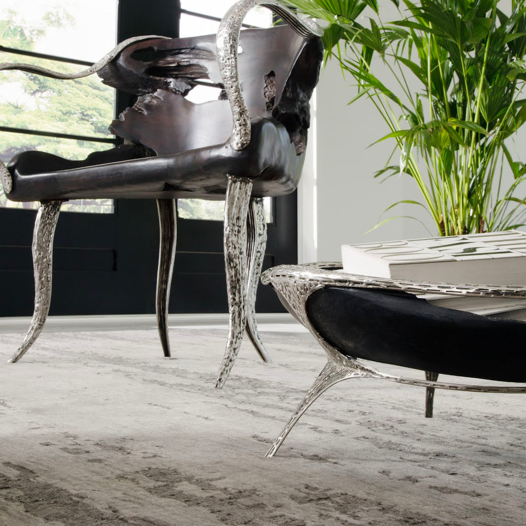 The Graven Table Top Bowl is a twist on organic modern design. Made from reclaimed teak wood hand finished in a lighten black with whimsically sculptured stainless steel legs. Each bowl will be uniquely different due to variations nature has given us. Adding this accessory to a dining table or coffee table as a centerpiece will give you space a dynamic boldness it had been missing.