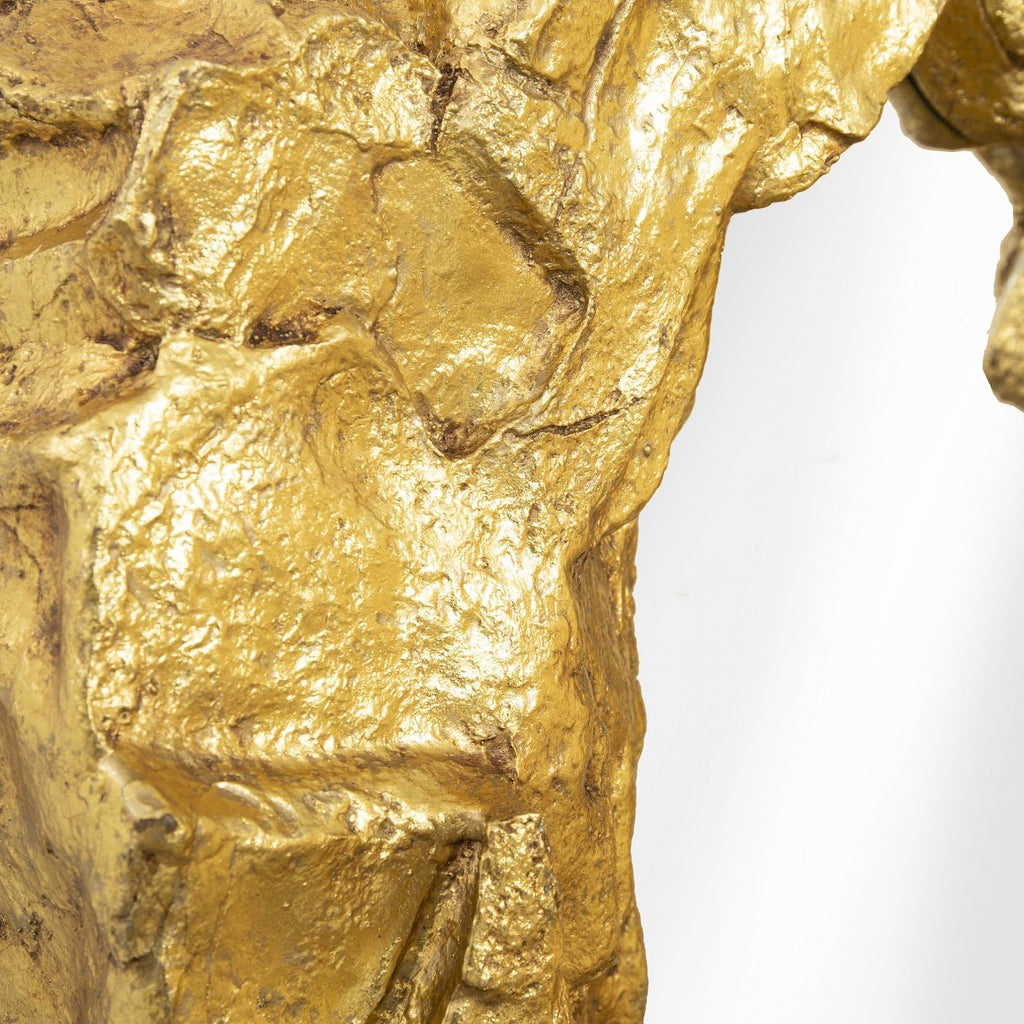 For the lover of asymmetrical design elements that bring tension into a space, the Rock Pond Narrow Gold Mirror is a shoe-in. It’s as if molten metal has been poured around the mirror to create the frame, frozen in a ruddy configuration as it cooled, but the decorative mirror is made of composite that has been covered in a gold leaf finish. We also offer a wider version of this mirror, the slightly different profiles making them perfect for pairing or for hanging in a gallery wall installation.