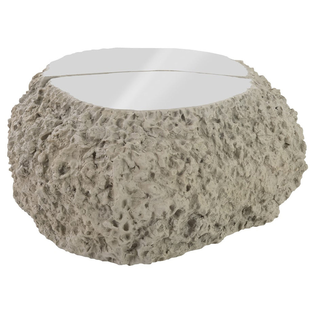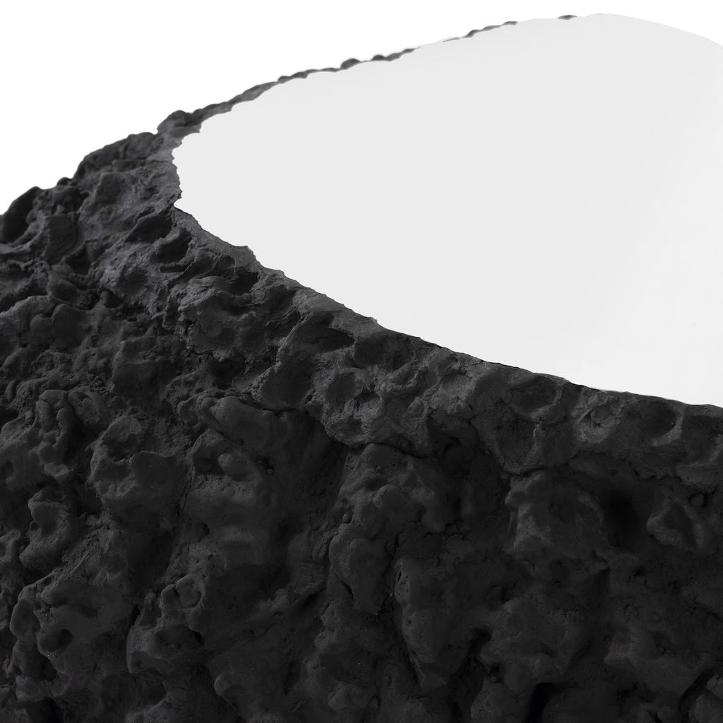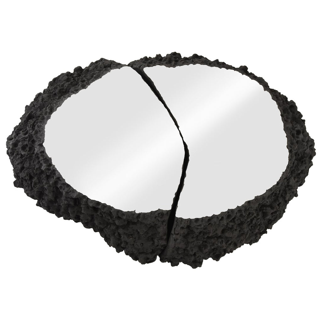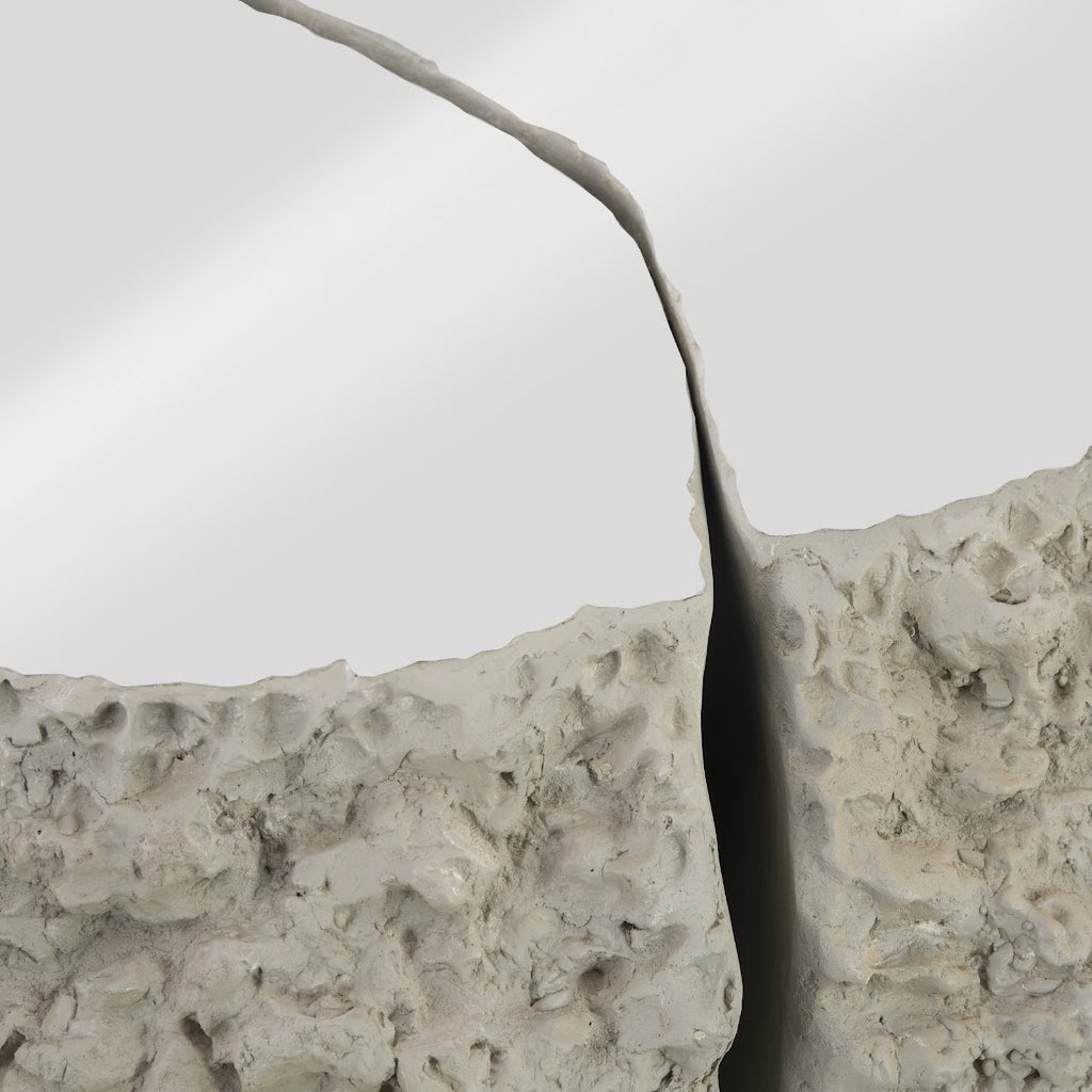 The Split the Difference Coffee Table simulates a solid chunk of lava stone being torn asunder from the constant friction of tectonic plates located far below the Earth’s crust. Made from a combination of resin and crushed stone then finished in an ashen gray, this elemental statement piece is beautifully contrasted with a remarkable chrome-finished stainless steel surface that delivers a modern take on this naturally inspired motif. This earth-shaking table is divided in two pieces that can be conjoined into one whole, or left as two separate tables depending on your design preference.