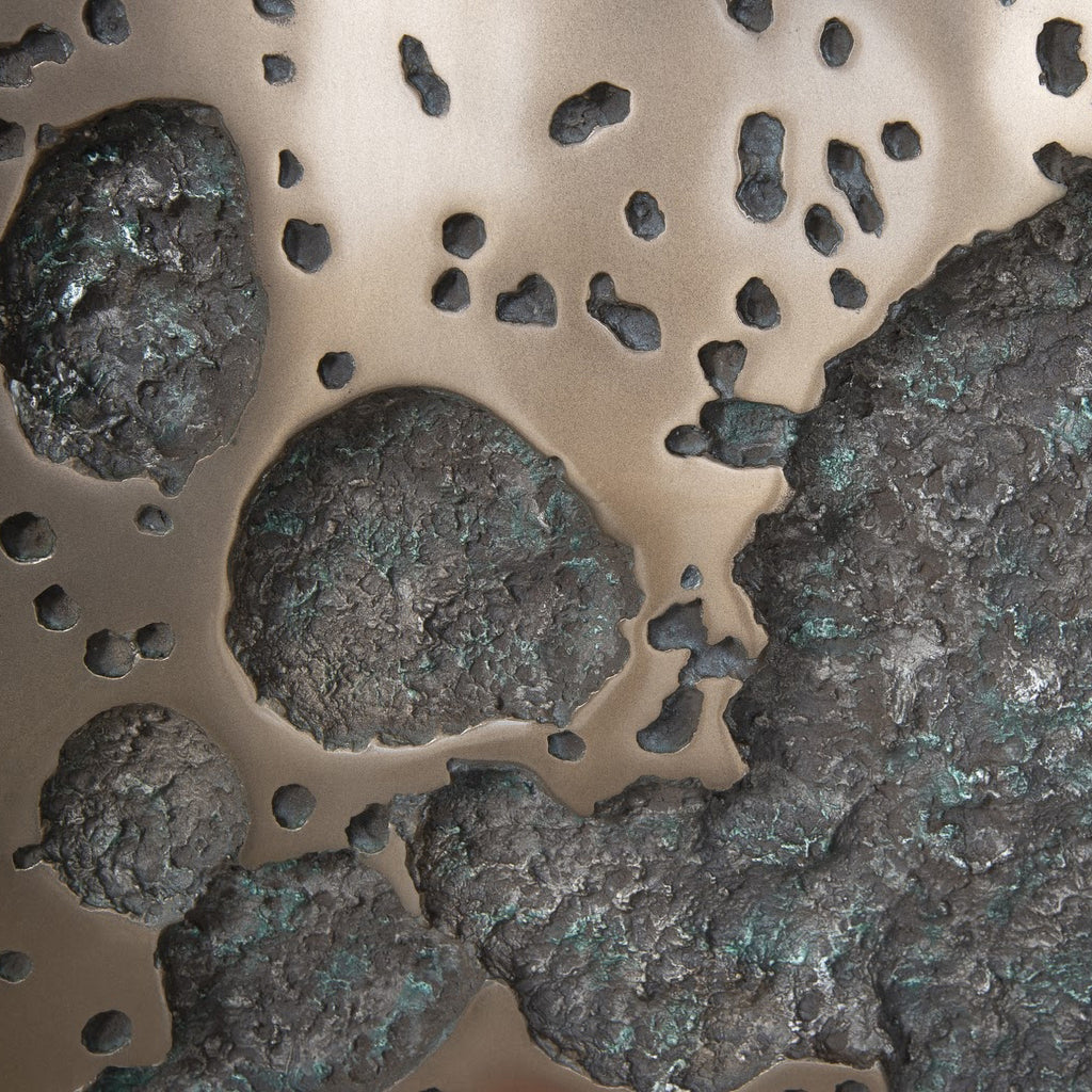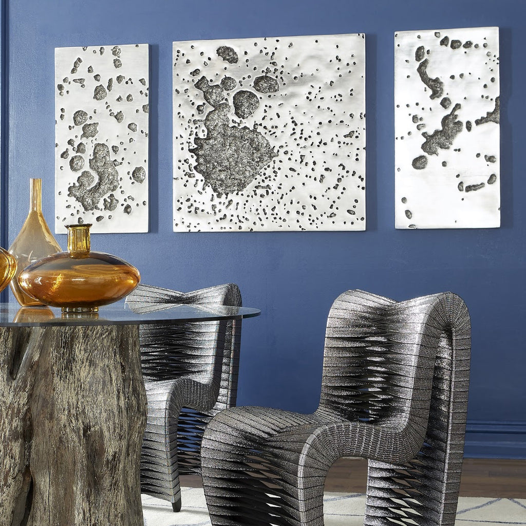 The moon couldn’t have created surfaces as winsome as those on our Splotch series of decorative mirrors and wall art, which includes the Splotch Square Wall Art. Rather than molten metal creating the craters that flow along the tile, the decorative accent is made of composite in a bronze, gold or silver finish.