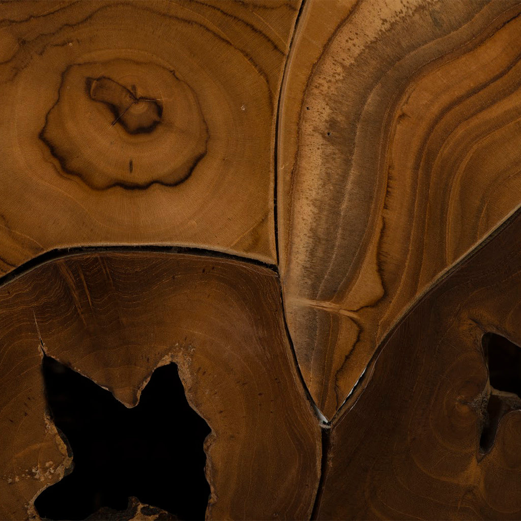 With exquisite craftsmanship, rescued scrap pieces of teak wood are hand assembled to create the Teak Slice Side Table. When a hint of texture is desired, this wood table will bring it; it is also fitting for a number of design styles, including contemporary, modern farmhouse, and industrial chic. There are a number of furnishings and accessories in the Teak Slice collection.