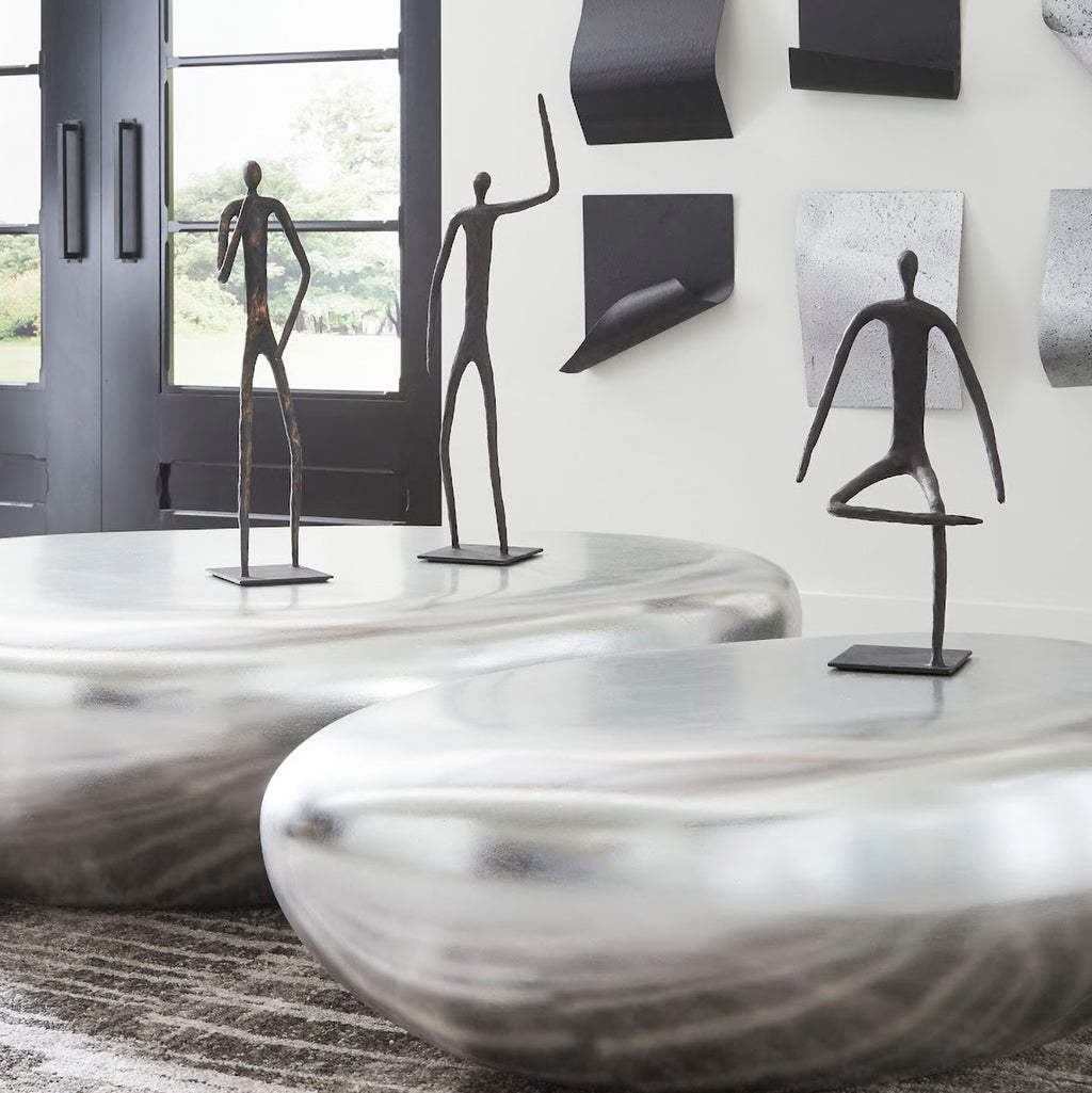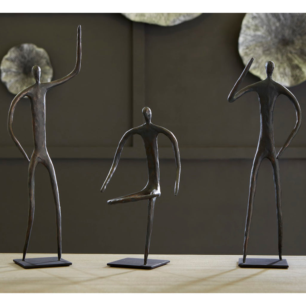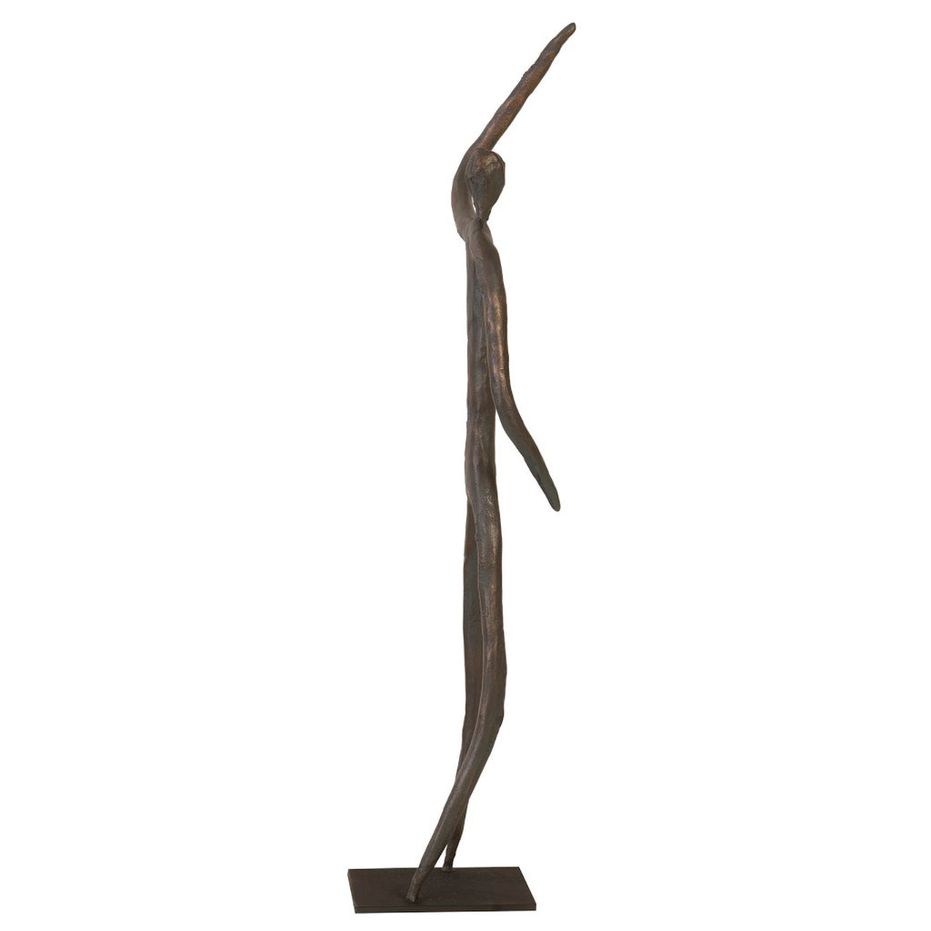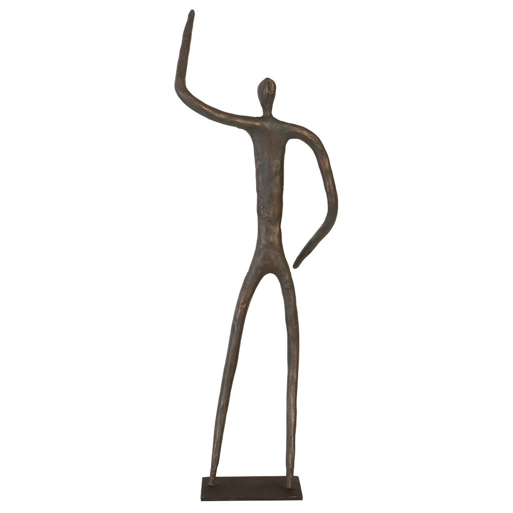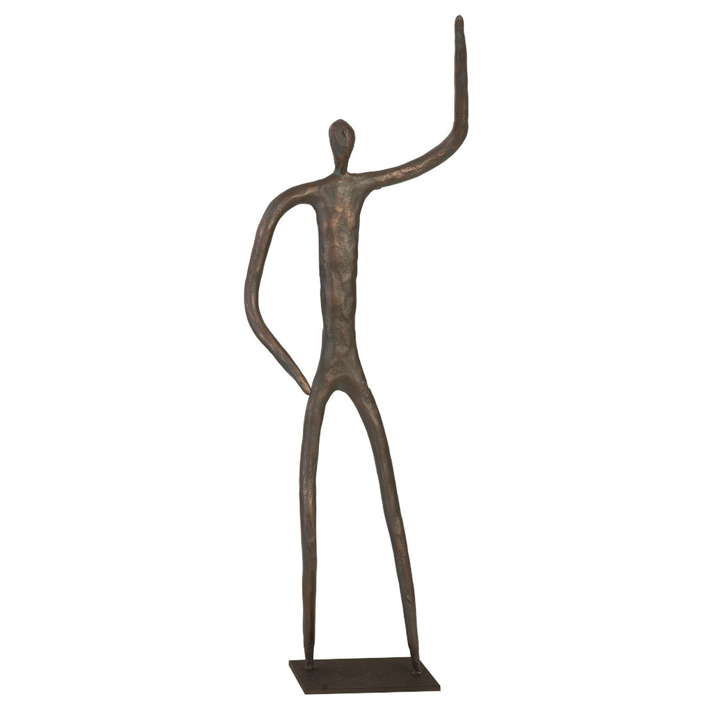 The clean lines of the Waving Figure Sculpture make this slim decorative sculpture a perfect accent piece for contemporary, modern farmhouse, and mid-century modern interiors. Abstractly rendered in metal in a bronze finish, the slim decorative accessory is a whimsical accent on a tabletop tableau or in a nicely arranged shelf display. Powerful on its own, the Waving Abstract Figure can also be combined with our gesturing and sitting abstract figures in the same finish..