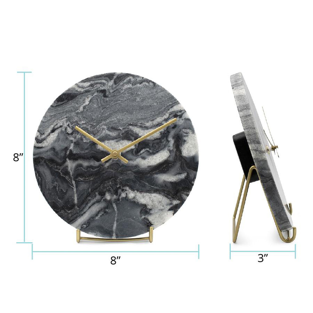 The Piero Clock was designed with the luxurious Italian post modern home decor in mind. This now classic elegant design features brushed brass time hands and display stand. The timeless black marble can fit into some of todays hottest modern lifestyle trends. Whether placed on a mantle or shelf each room will be enhanced with this bold new time piece.