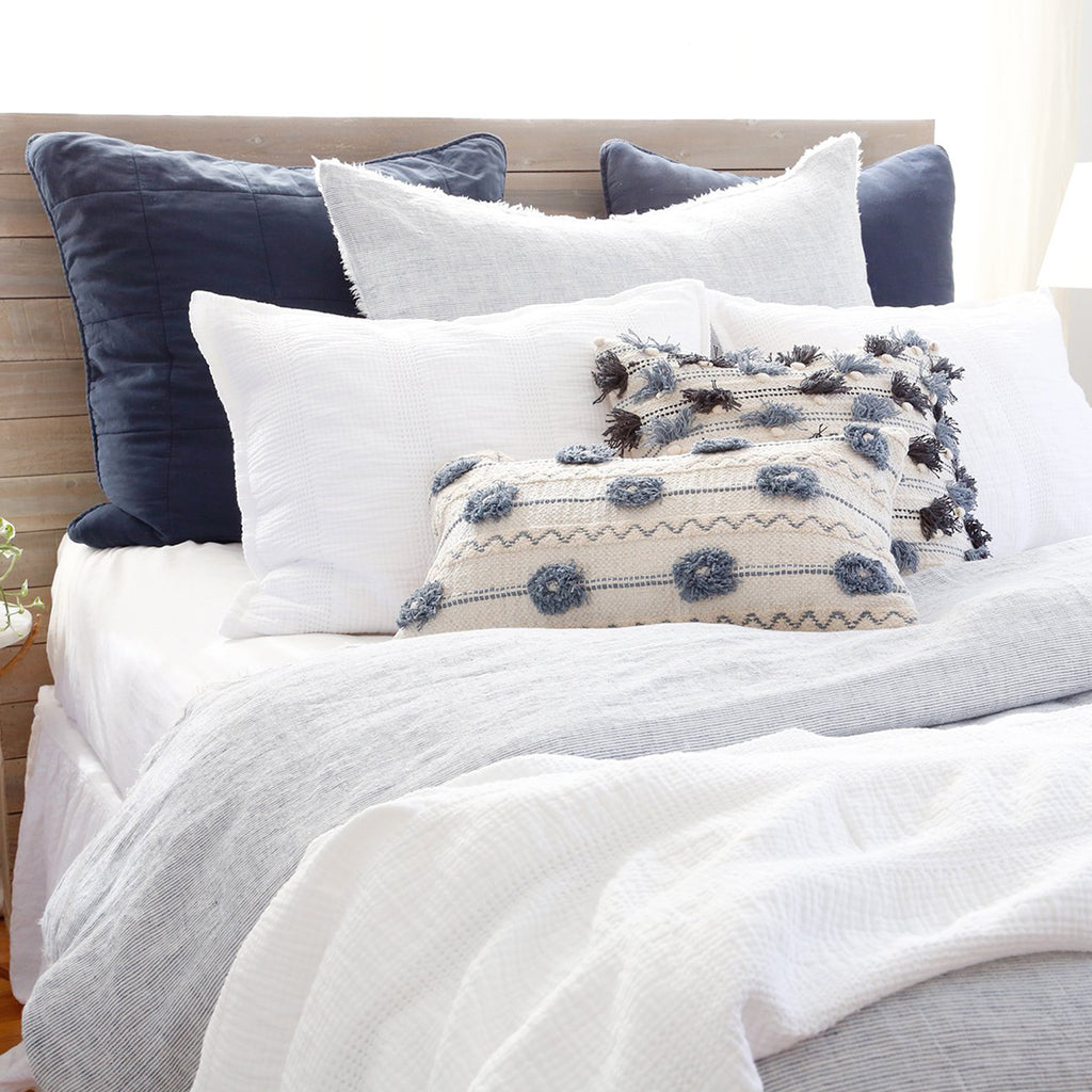 Subtle frayed edges of soft linen add a dash of unexpected detail to this Pom Pom at Home Logan Collection. Woven with two different colored yarns for a heathered effect, the duvet cover and shams feature shell button closures.