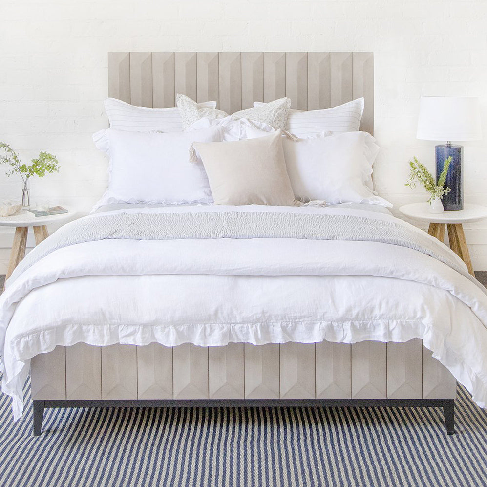 Crafted in Portugal, the Pom Pom at Home Nantucket is a modern take on the matelasse with its beautiful interwoven weave. The matelasse achieves a soft, puckered appearance without any batting.