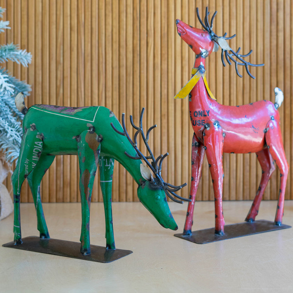 Recycled Metal Deer Figurine Set of 2