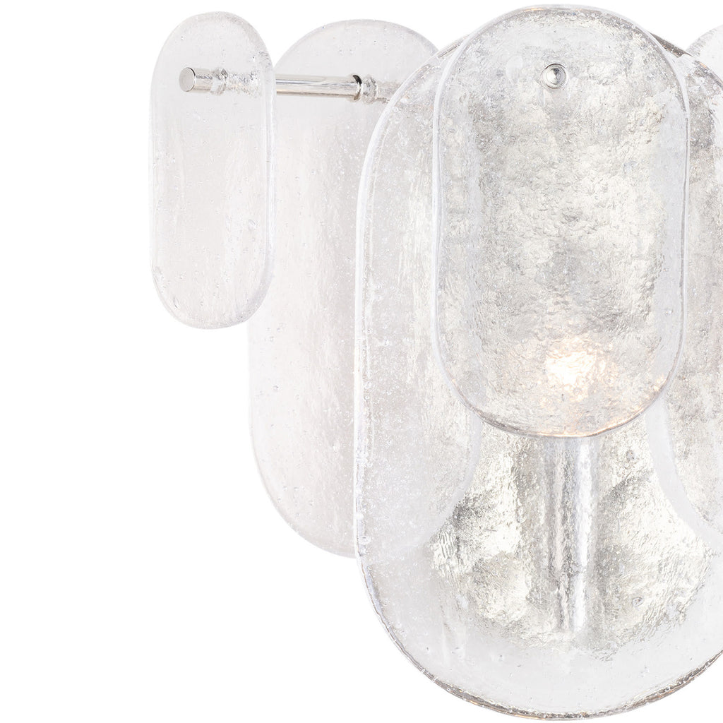 Modern and elegant, panes of striking water glass adorn the Echo Sconce to create a dynamic lighting piece. Each glass pane diffuses light, providing a soft glow to the area around it, perfect for a hallway or powder room.
