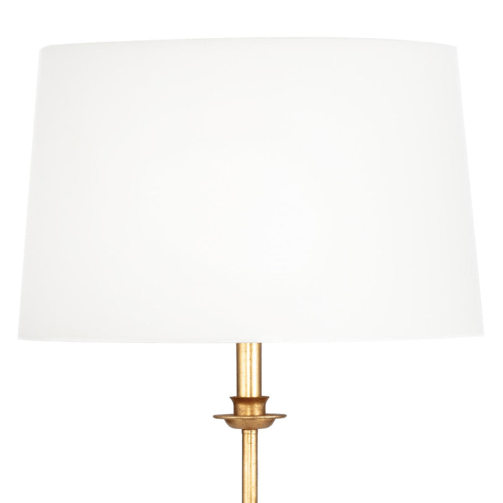 Add elegance and ambiance to your home with the Regina Andrew Fisher Floor Lamp. With a gold-leaf finished body and a natural alabaster stone base, this floor lamp is simply beautiful. A crisp linen shade completes the refined look, atop a delicate candle cup accent. Place this elegant floor lamp in your living room or home office for a touch of sophistication.