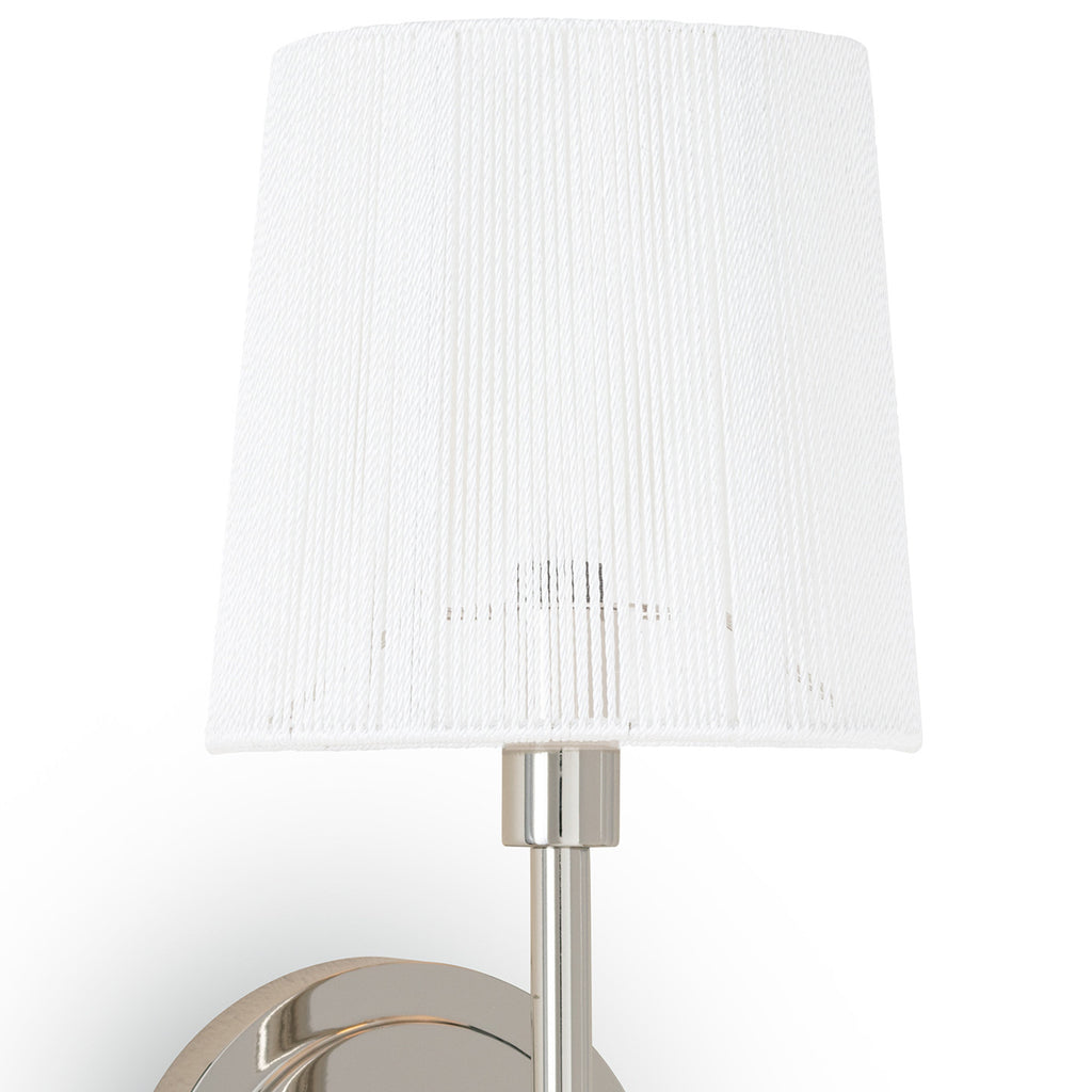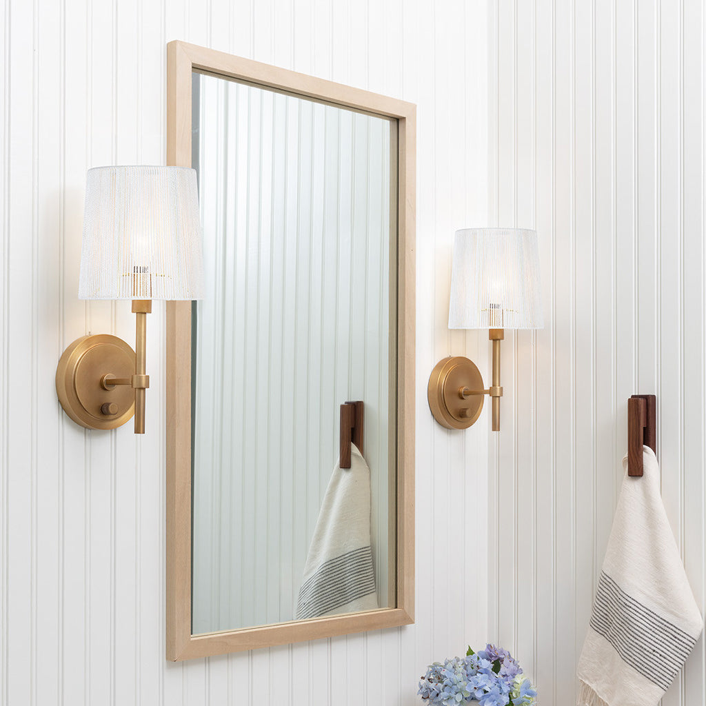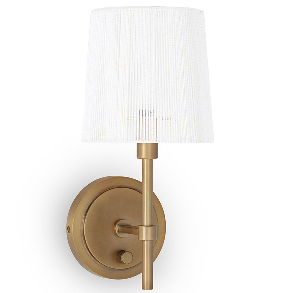 The Franklin Sconce is a harmonious blend of classic and femininity with the added utility of a dimmer knob on its backplate. Adding a touch of tactile intrigue through its unique string lamp shade, the Franklin Sconce is the perfect addition to a powder room or as a pair on either side of a bed.