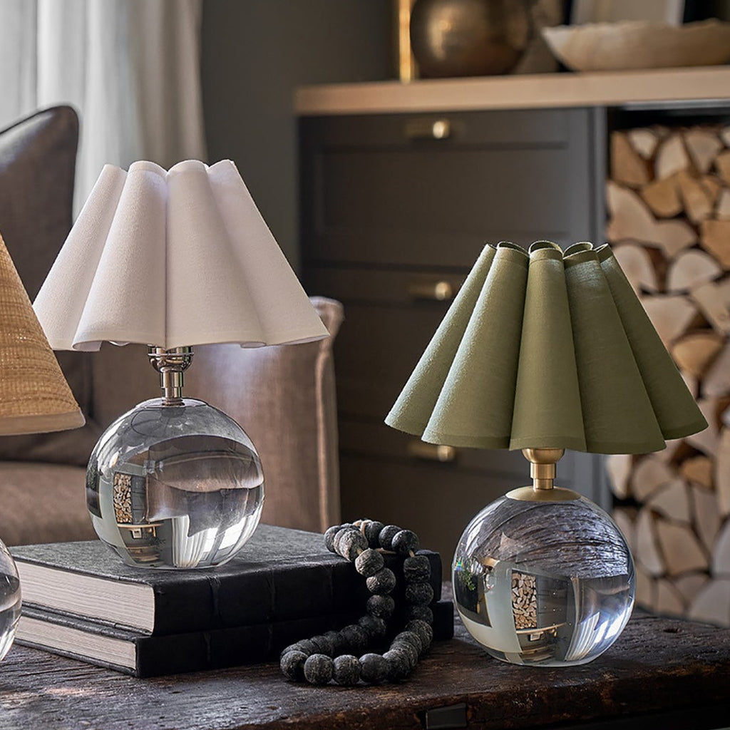 Compact yet striking, the Giorgio Mini Table Lamp offers a soft, welcoming illumination with scalloped shade. Crafted with a solid, hand-polished base and polished nickel hardware, this petite lamp adds a pop of color while maintaining a sophisticated look. The Giorgio enhances any space with its stylish and functional design.