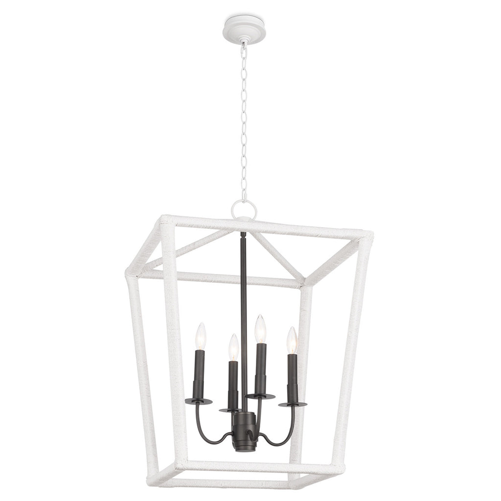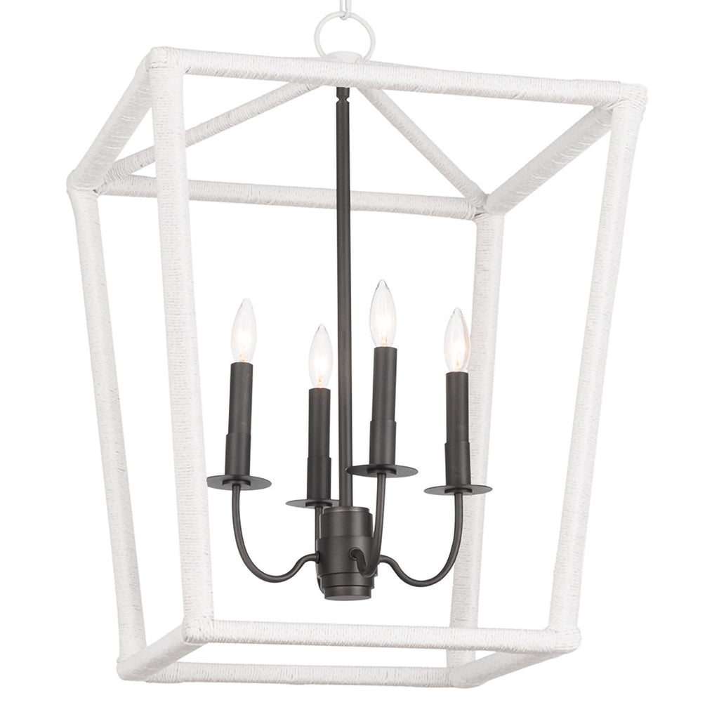 A twist on the traditional lantern, the Luella has a uniquely textured white finish. Elegant, blackened brass candelabra lighting on the interior creates an unexpected statement in your foyer, living room, or dining room.