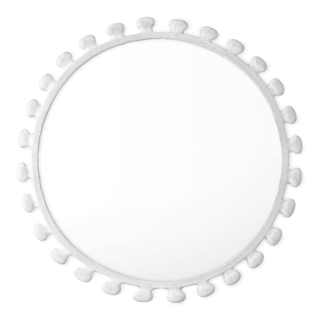 The Sanya Mirror is rich with primitive, sculptural beauty. Sanya's cast metal matte white, paper maché finish is the perfect match for a modern space with natural elements. Place Sanya in an eclectic living room, boho bedroom or anywhere a bit of bold, hand-crafted style is needed.