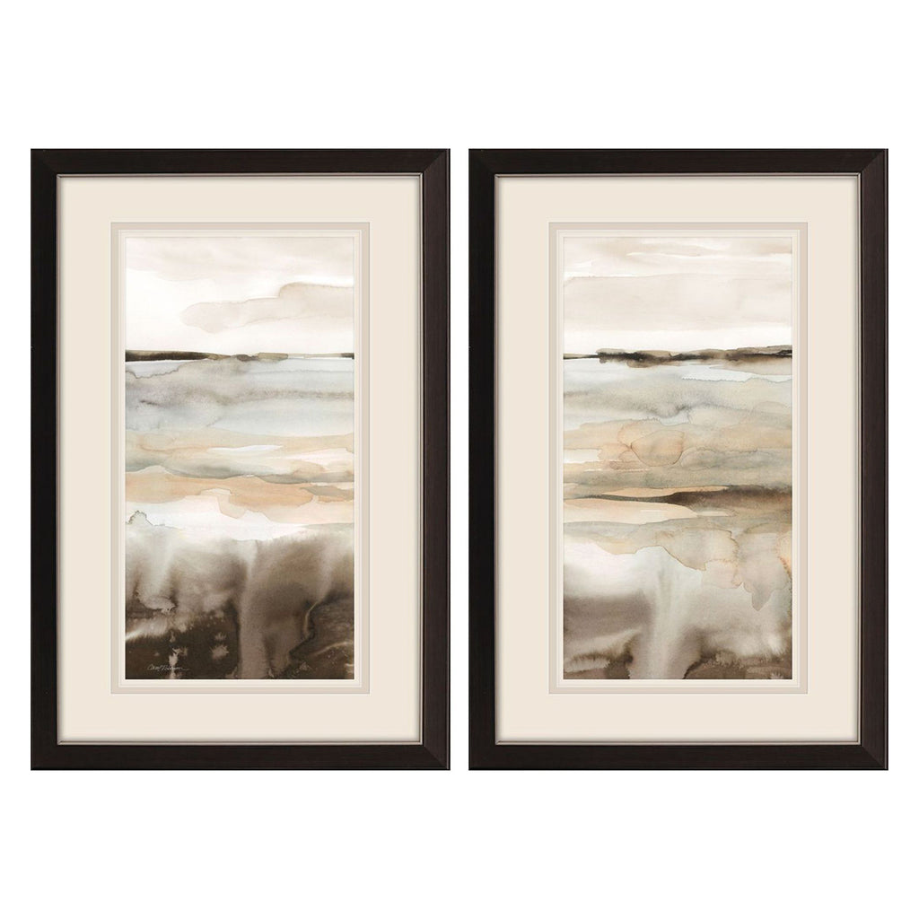 An abstract landscape in soothing neutral tones is matted in oyster. Framed in a metallic bronze finish moulding with a pewter lip.