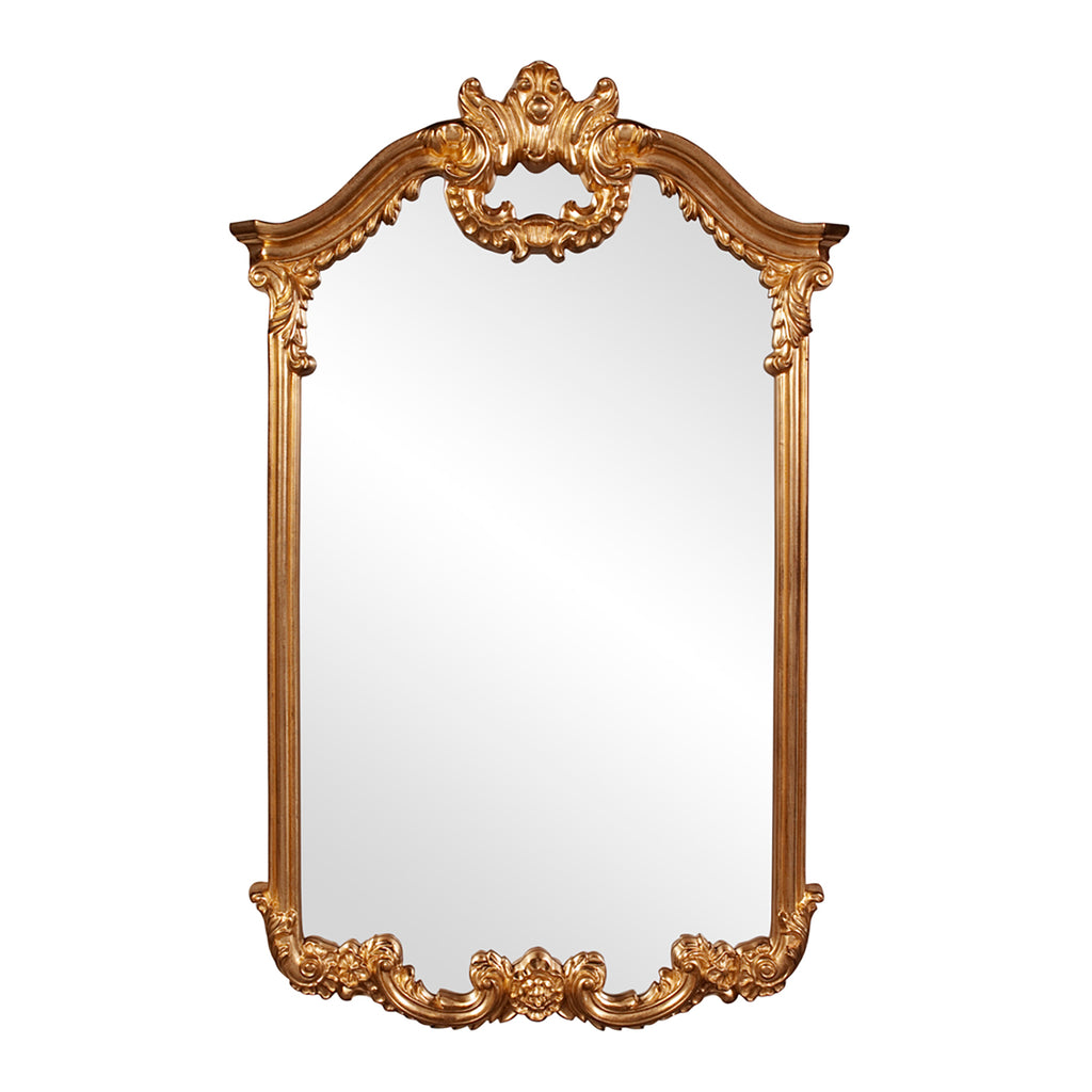 The Roman Mirror is a lovely piece of pure simplicity. The rectangular frame is arched with ornamental adornments at the top and bottom, giving the piece a neo classical look. It is then finished in a bright gold leaf. It is a perfect focal point for an entryway, bathroom, bedroom or any room in your home. D-rings are affixed to the back of the mirror so it is ready to hang right out of the box! The mirrored glass on this piece is not beveled.
