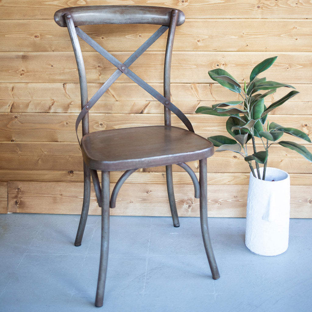 Impress your guests with our rustic iron cross-back dining chairs. Enjoy a casual snack at your dining table, or simply use them as a decorative piece by placing a planter or pillow in the seat. Either way you choose, it will make a beautiful statement.
