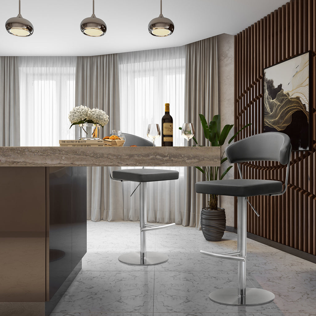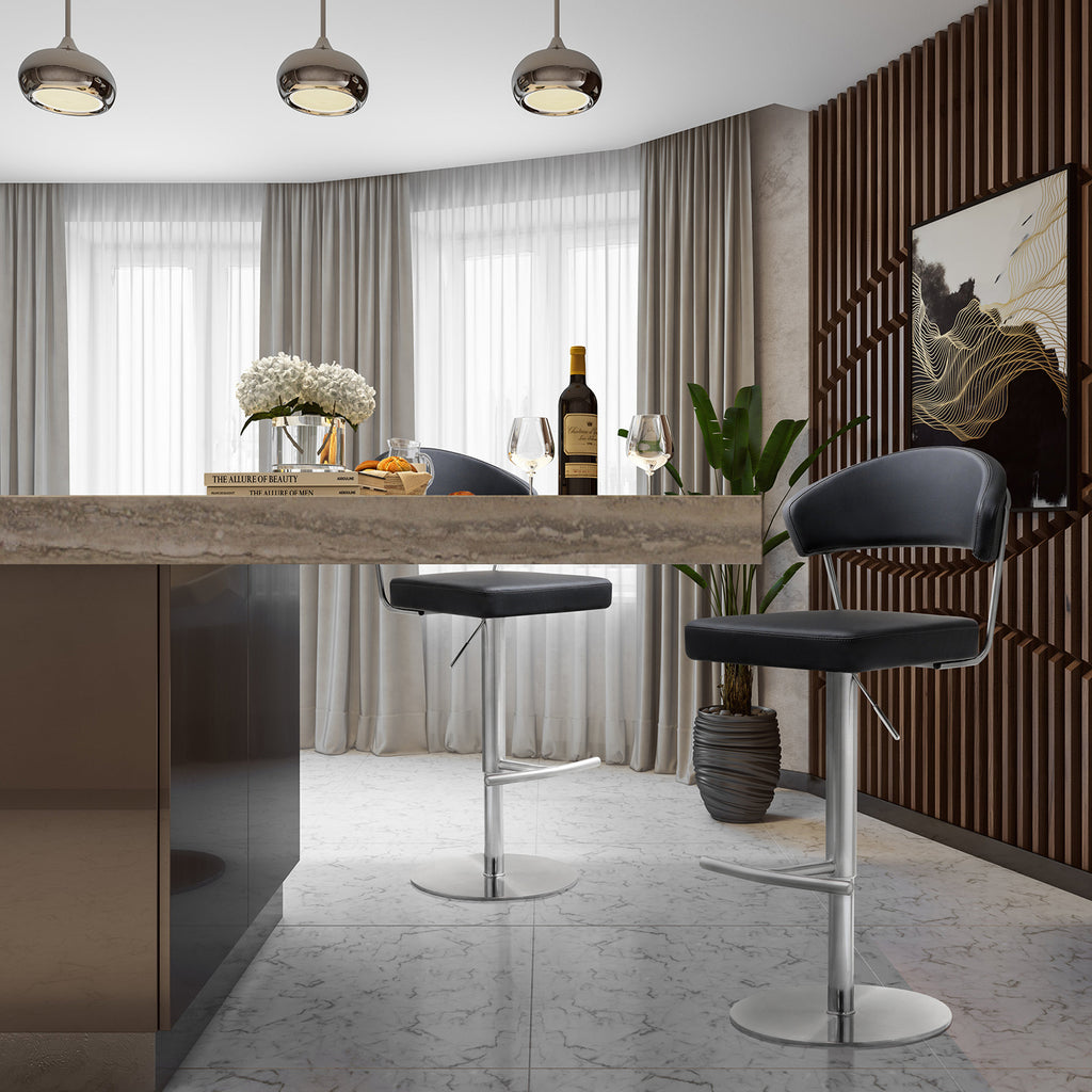 Furnish your kitchen or bar area in contemporary style with the Sazerac. The solid stainless steel frame provides a sturdy base, while the plush seat and footrest ensure maximum comfort. The combination of angles and gentle curves gives this stool an eye-catching appearance, while the neutral color allows it to match well with any decor.