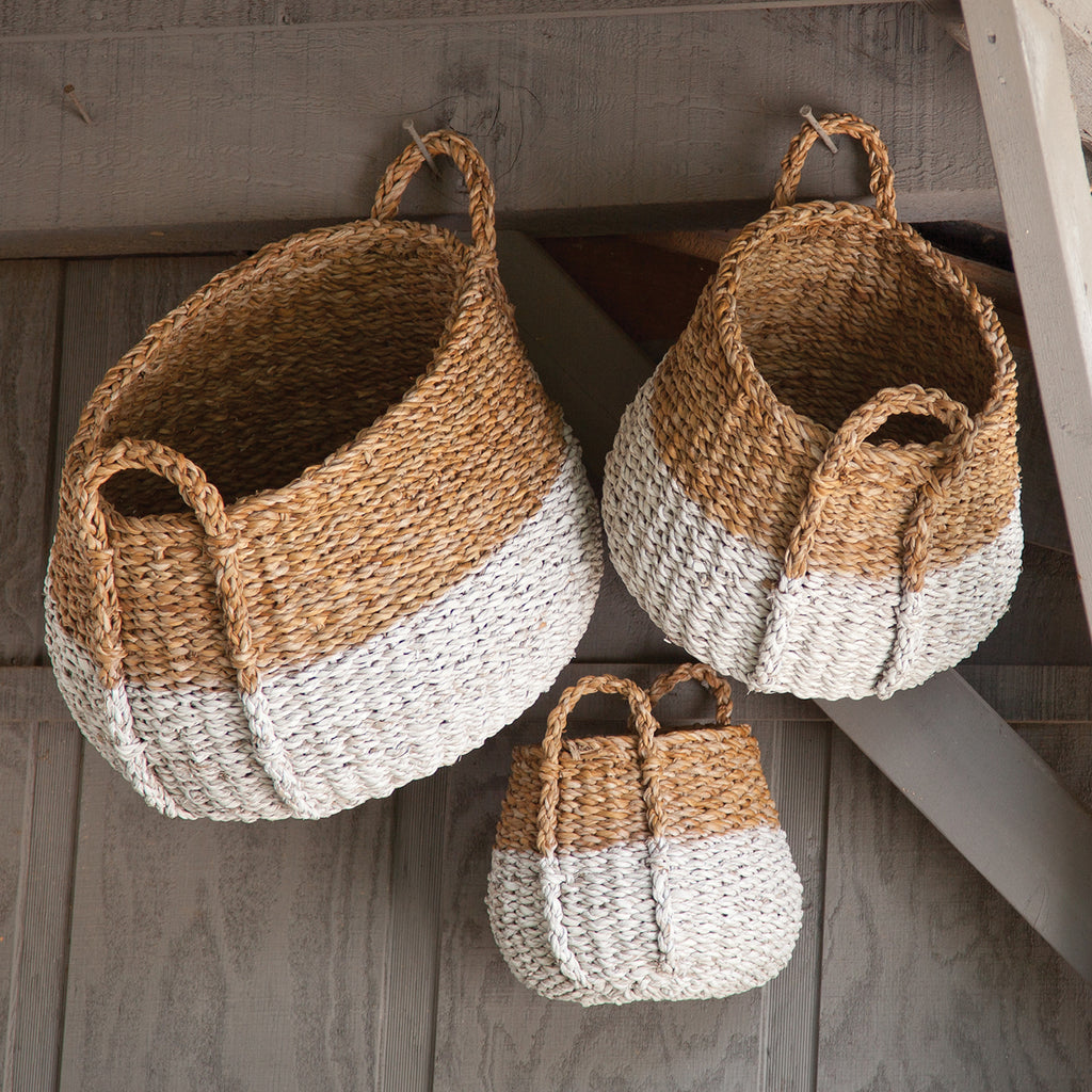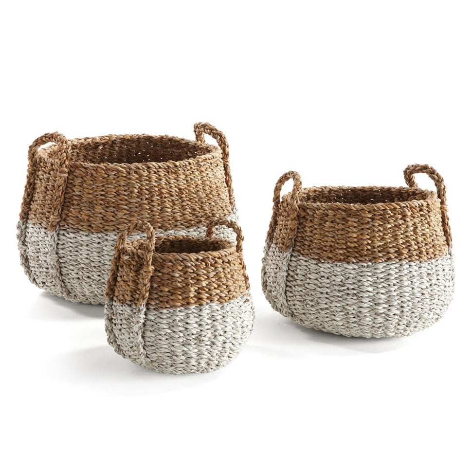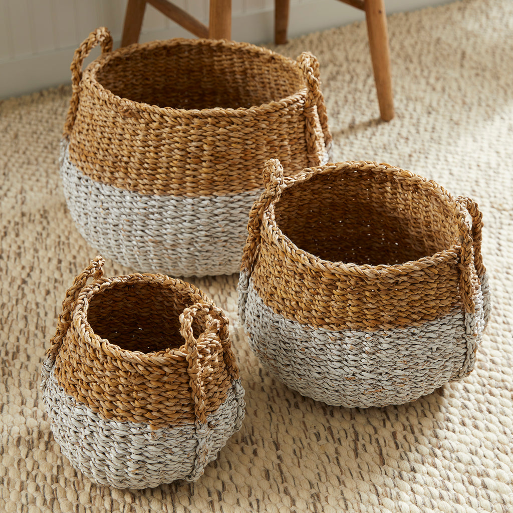Seagrass is double-walled baskets that are supple, not stiff. Naturally beautiful. These two-toned, substantial set of baskets are ideal for storing heavy items with ease.