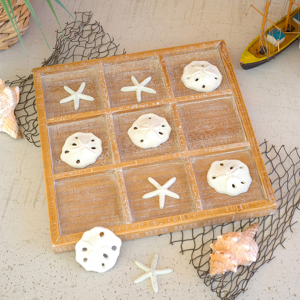 Children of all ages will enjoy this seaside tic-tac-toe game. The neutral tray and beachy pieces make this a playful pastime or beach boredom-crusher. It also makes a great display tray when not in use.