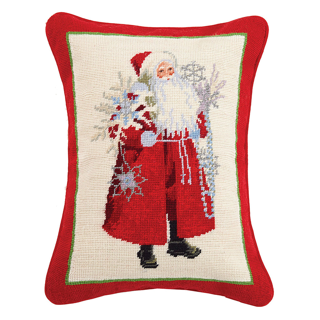 Snowflakes and Scarlet Santa Needlepoint Throw Pillow