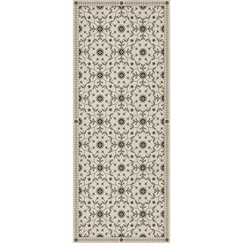 Meditations Divine & Moral vinyl floor cloth from the Folk Art Museum Whig Rose collection was inspired by vintage linoleum. Perfect for kitchens, baths, screened in porches and patios, the durable vinyl floorcloths are easy to clean and always lay flat. Vinyl floorcloths are made with two-ply vinyl with latex padded backing, designed to be fade-resistant in direct sunlight and durable against the elements but work best in controlled outdoor environments.