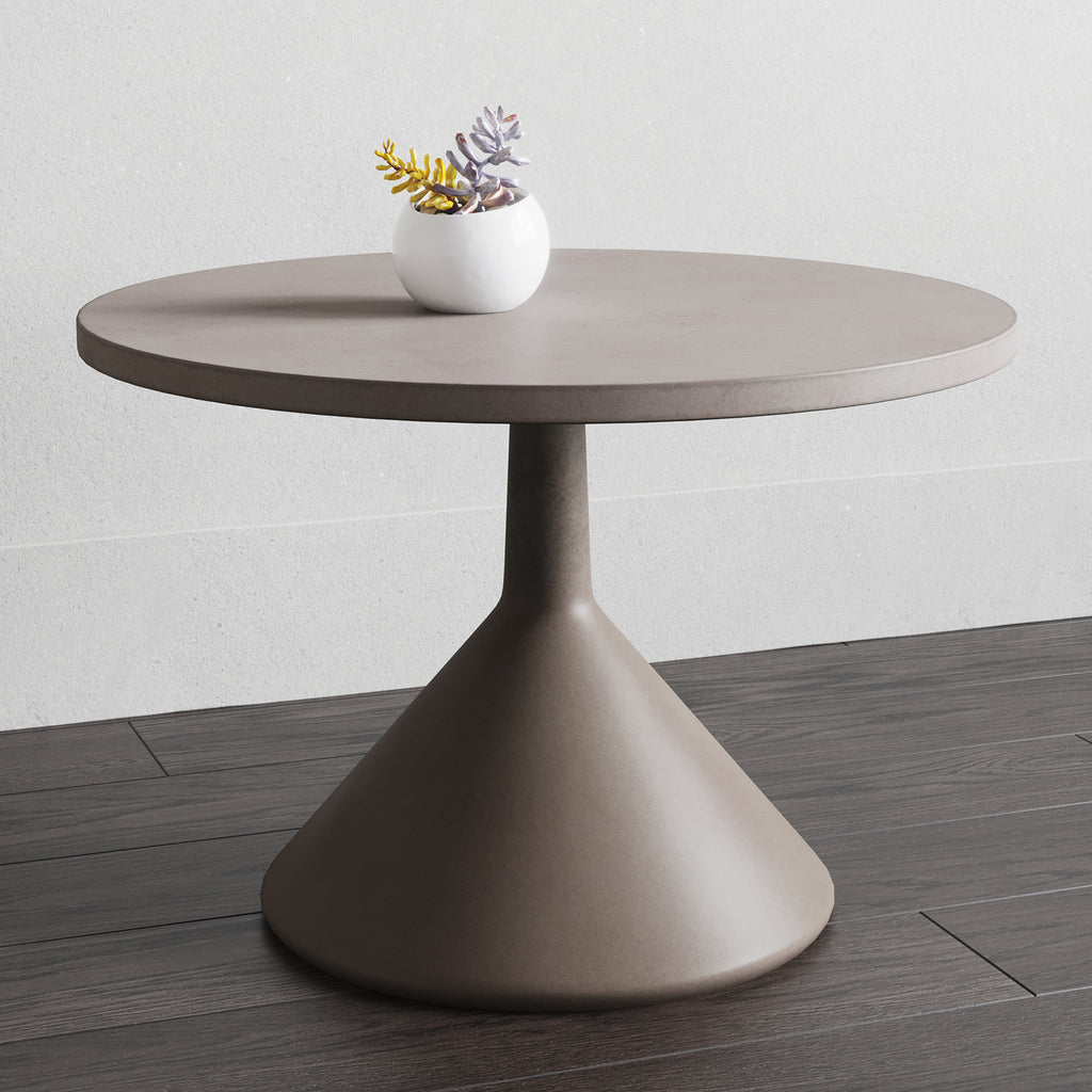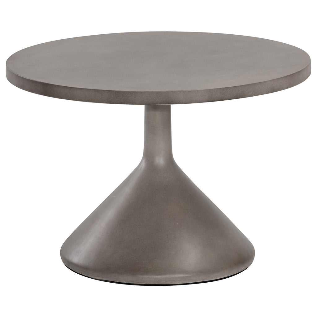 Inspired by brutalist architecture, this concrete coffee table will be a bold addition to your space. Features a grey concrete round top with a solid base. Can be paired with matching end table. Crafted from a natural concrete mix, each piece will look different, with variations of hues that will enhance over time.