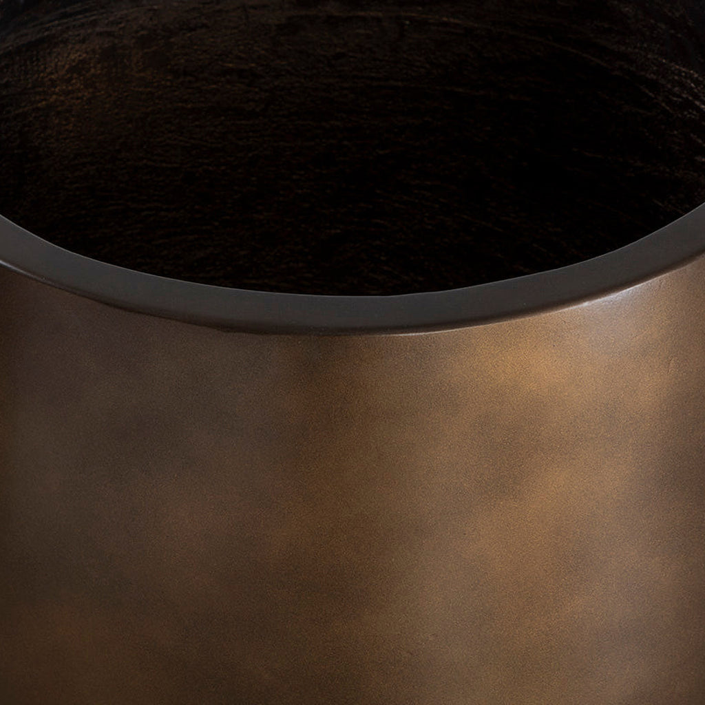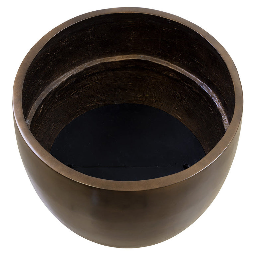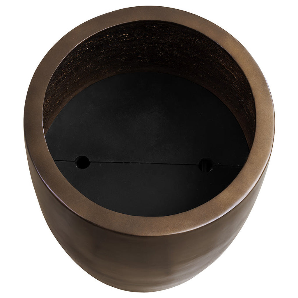 The contemporary form of the round Aster Planter allows for a lush display of botanicals that will complement any decor. Constructed from glass fibre-reinforced concrete for increased durability with a protective sealant finish that allows it to withstand the elements. Designed with an antique bronze finish with an alluring sheen, this beautiful planter will be a welcome addition to large spaces such as hotel lobbies or building entrances. Includes holes for drainage, two steps, and removable shelf inserts.