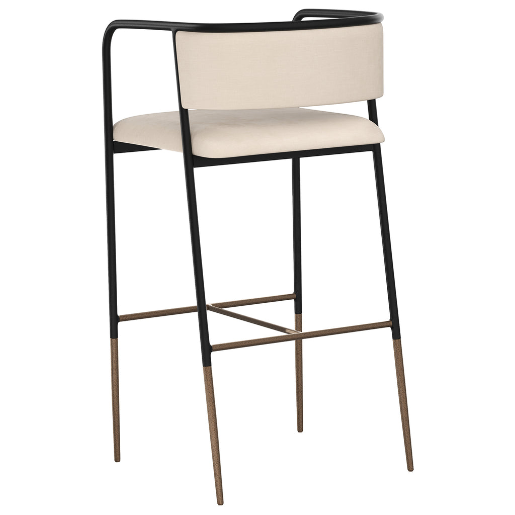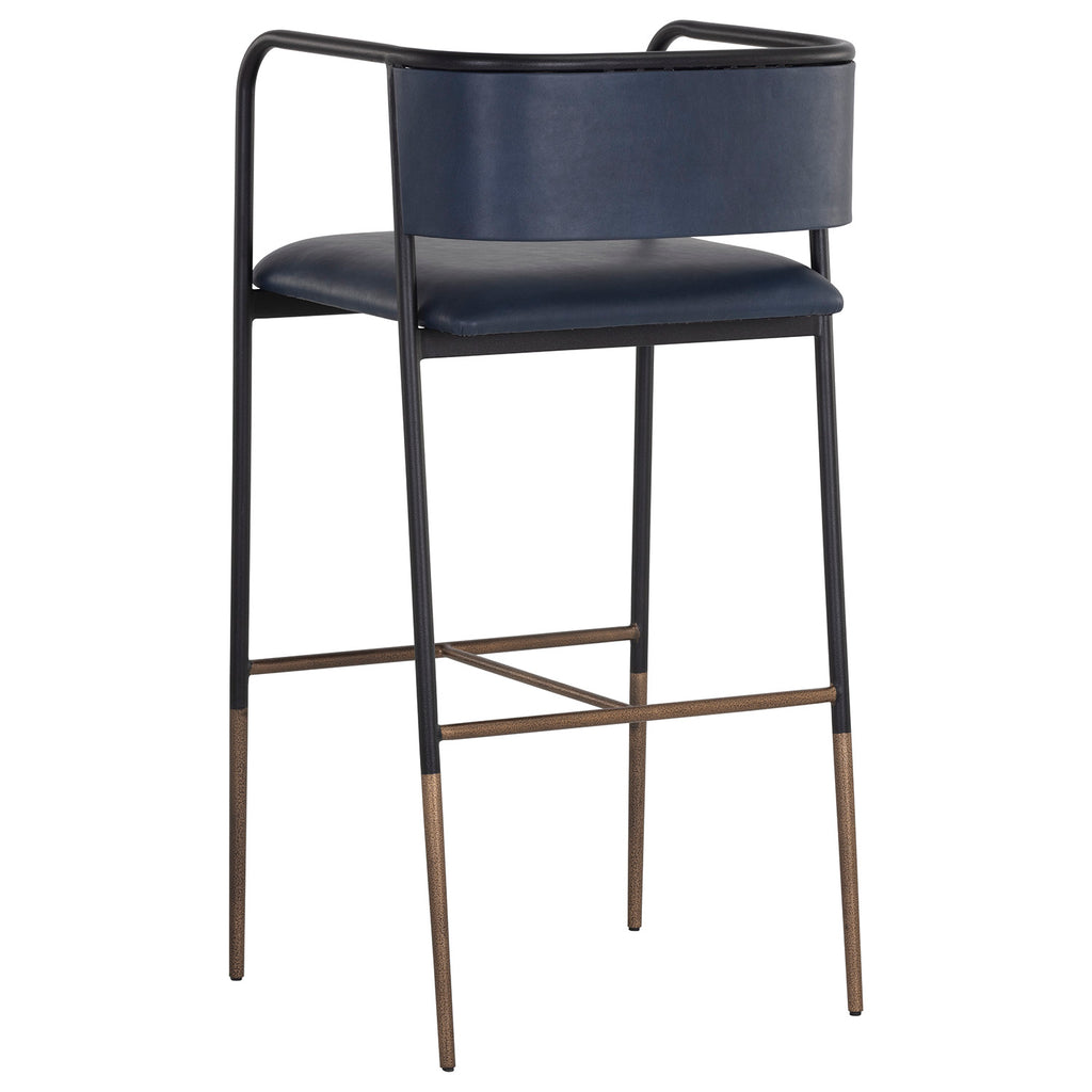 Simplicity is key with this effortlessly elegant counter stool that features a curved backrest. Stocked in bravo admiral faux leather and completed with a black metal frame and legs with antique brass foot caps. With refined craftsmanship, this design was brought to life by skilled local artisans.