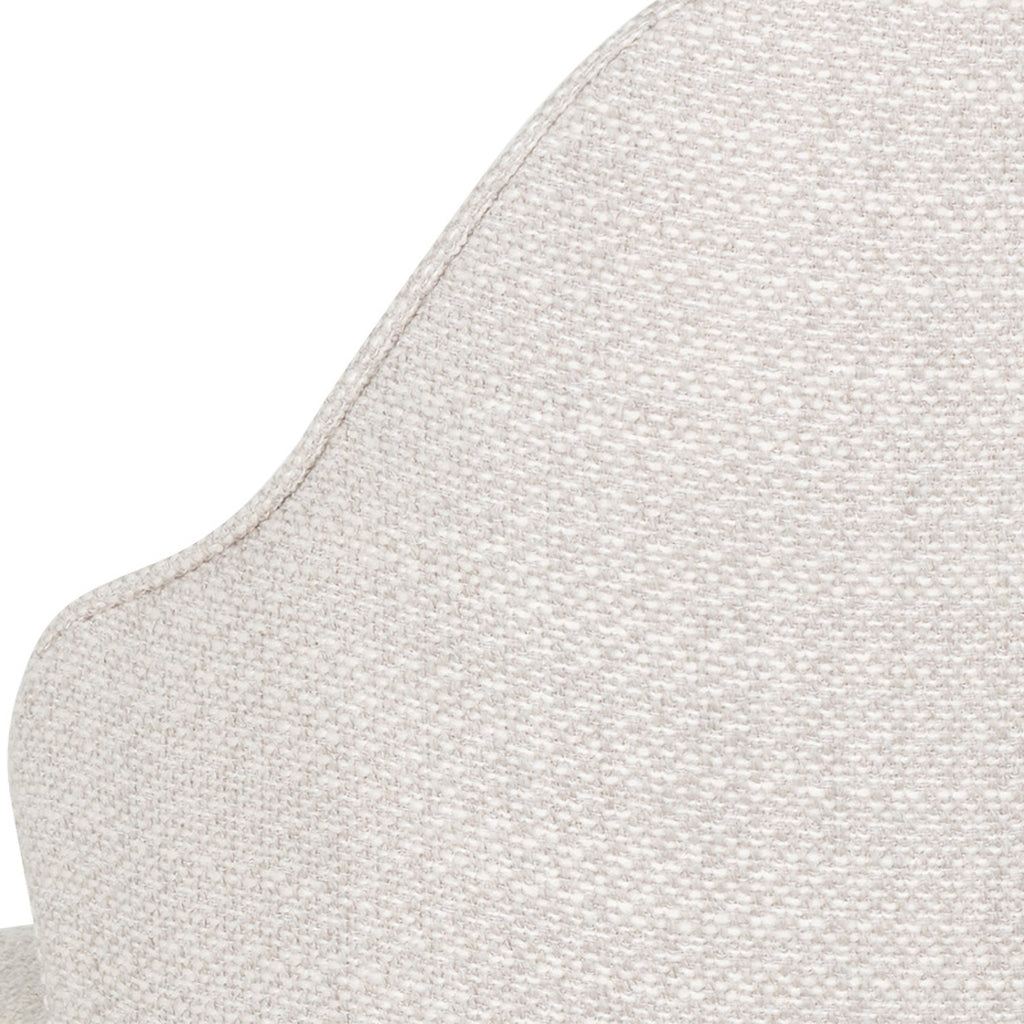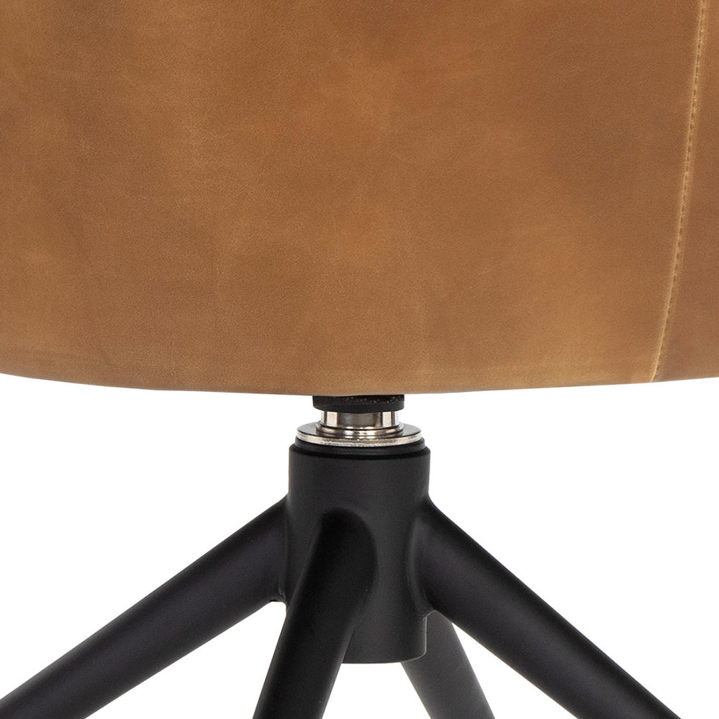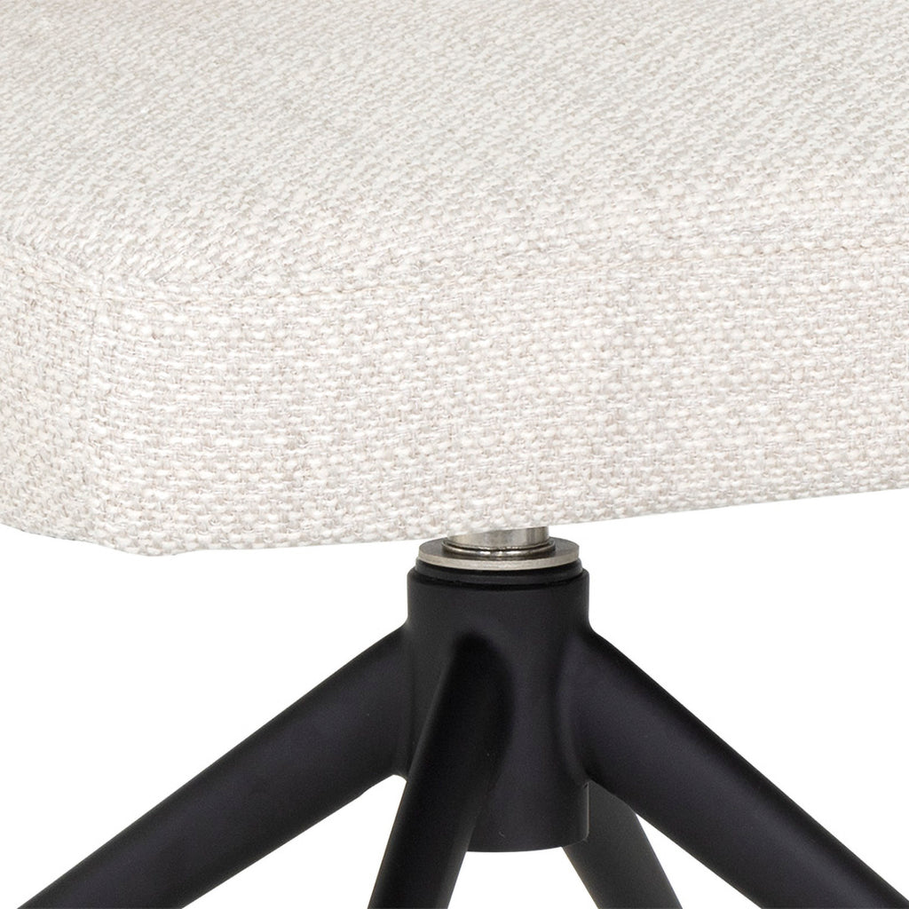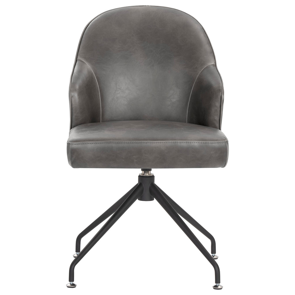 A handsome swivel dining chair is designed for transitional and modern spaces. Features a curved seatback in performance fabric or fux leather with a black iron base. Performance fabric is moisture repellent, durable and easy to clean.