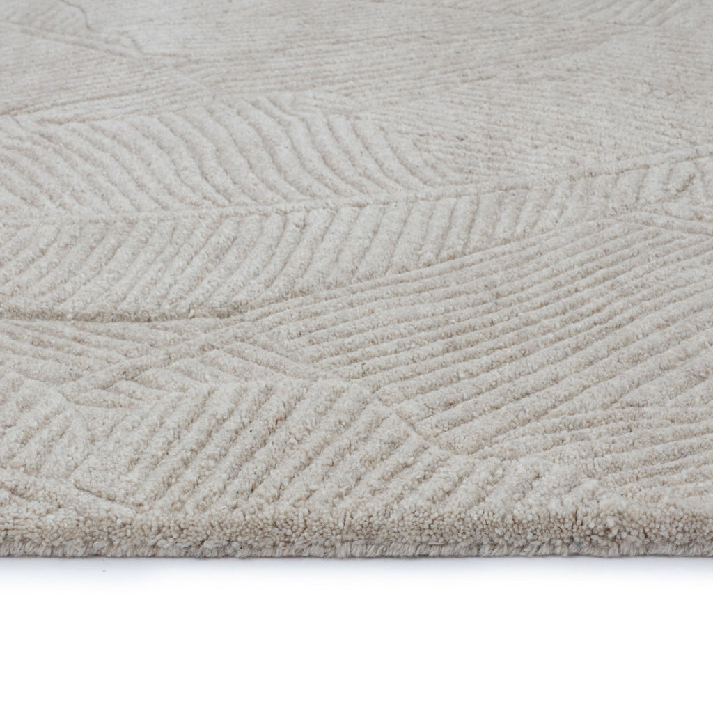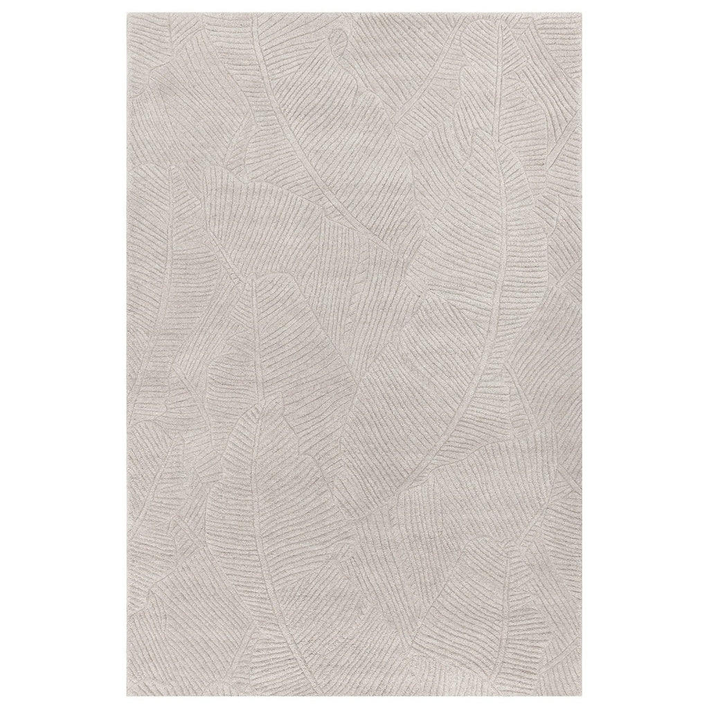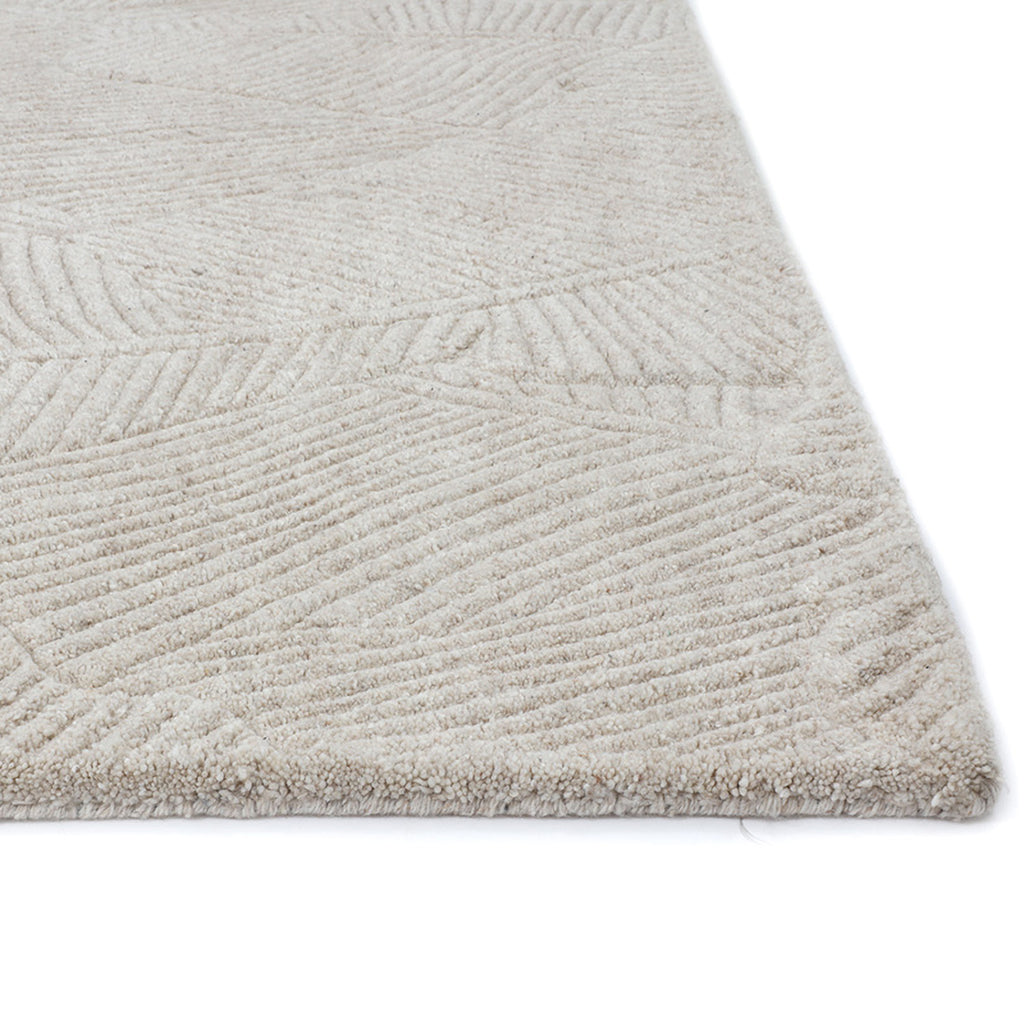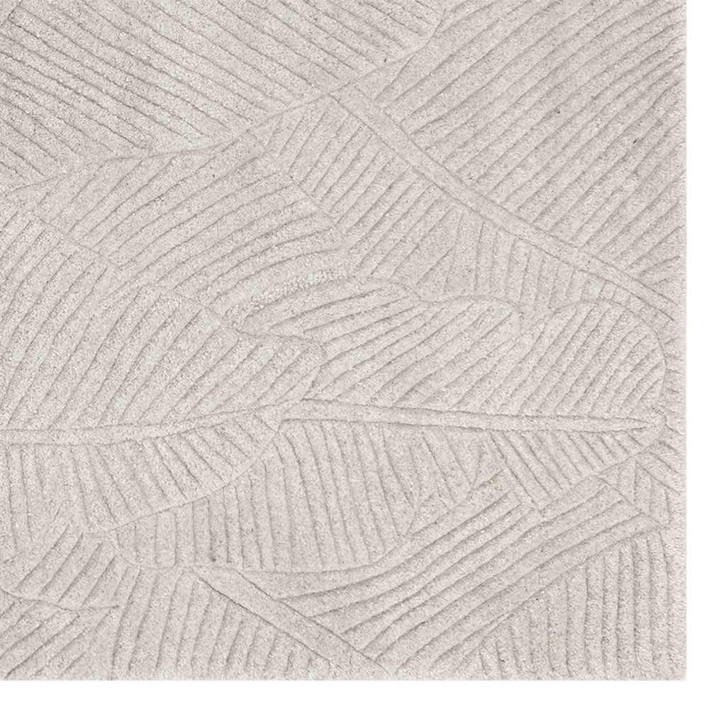 Introduce an understated tropical element to your space with this hand-tufted rug featuring a pattern reminiscent of large palm leaves.