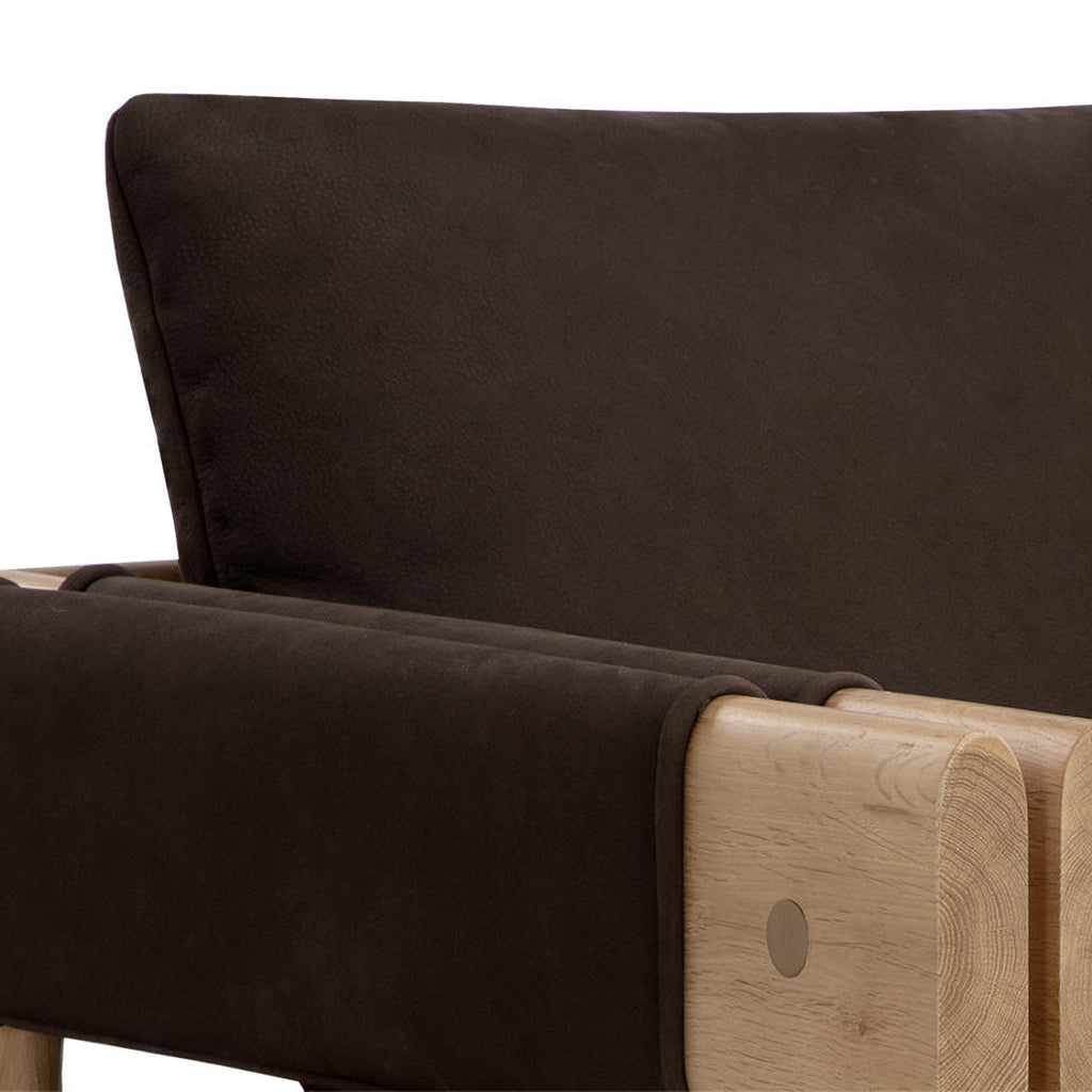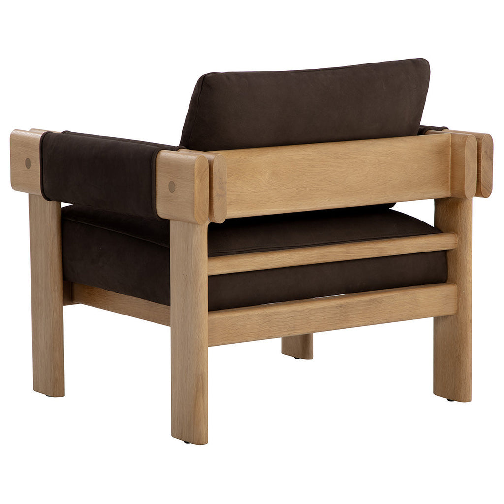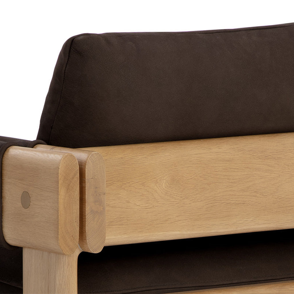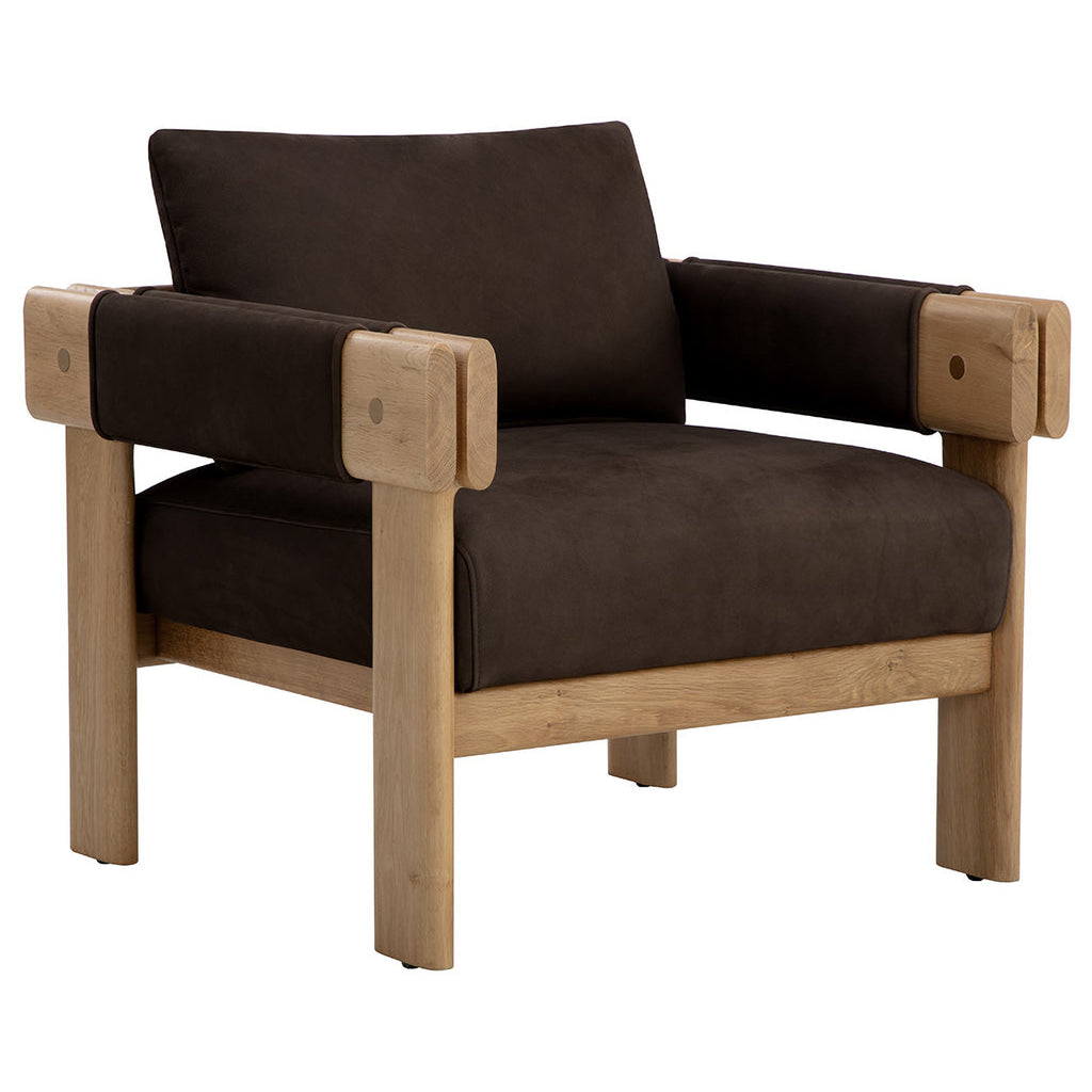 Crafted from natural materials, the Carmichael Lounge Chair adds an inviting atmosphere to any room. The beautiful characteristics of rustic oak wood and ludlow sesame leather are emphasized through the chair's double armrest design. As wood is an organic, porous material, these pieces will contain natural variation of texture and may also exhibit fine indentations and cracks. Wood pieces will also display a disparity of colour and grain, and visible knots and burls that add to the character of each piece. Handle with Care: This design has been crafted with 100% leather. Leather is a natural material; as such, colour variations, markings, wrinkles, grooves and light scratches are acceptable and appreciated characteristics. No two pieces are alike. Visit our Product Care page for more information on how to ensure the lasting beauty of this piece.