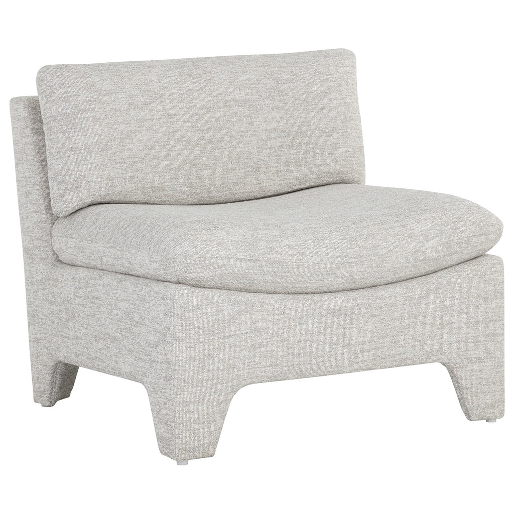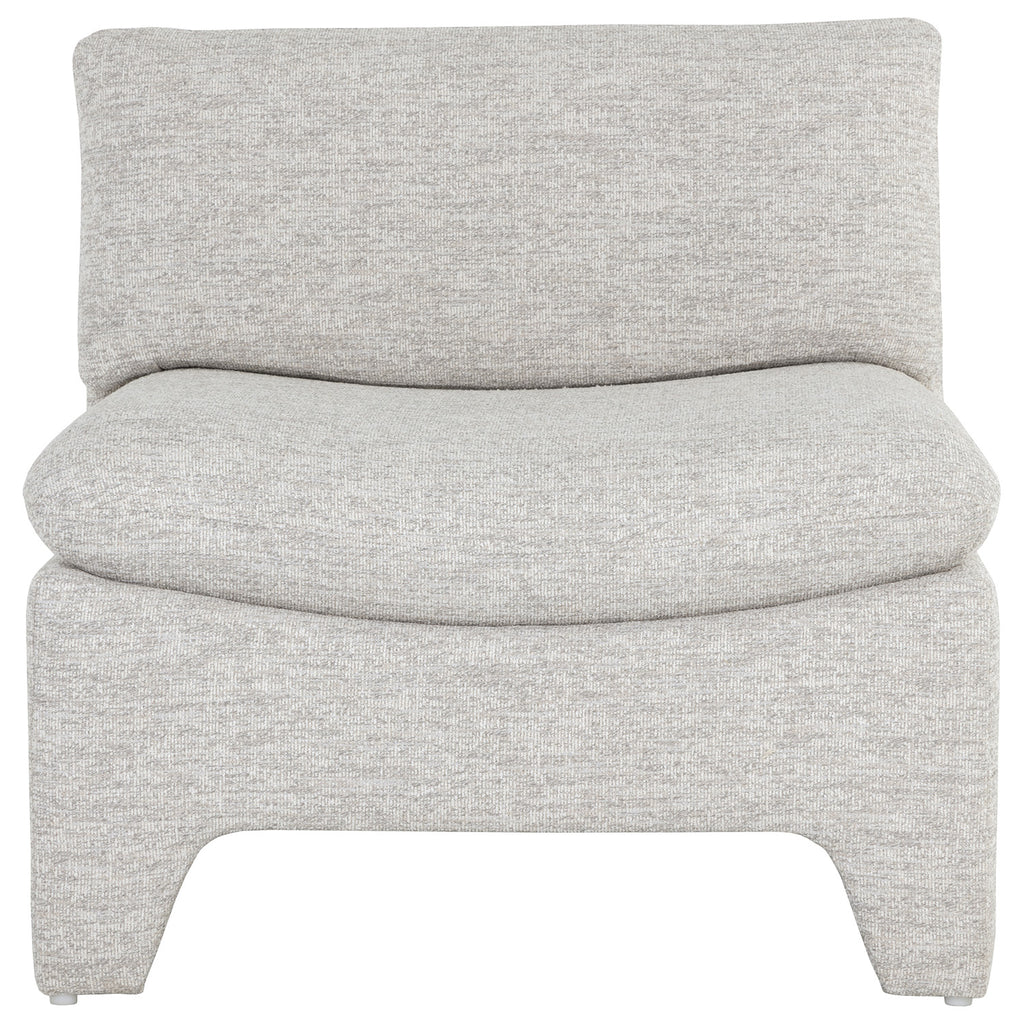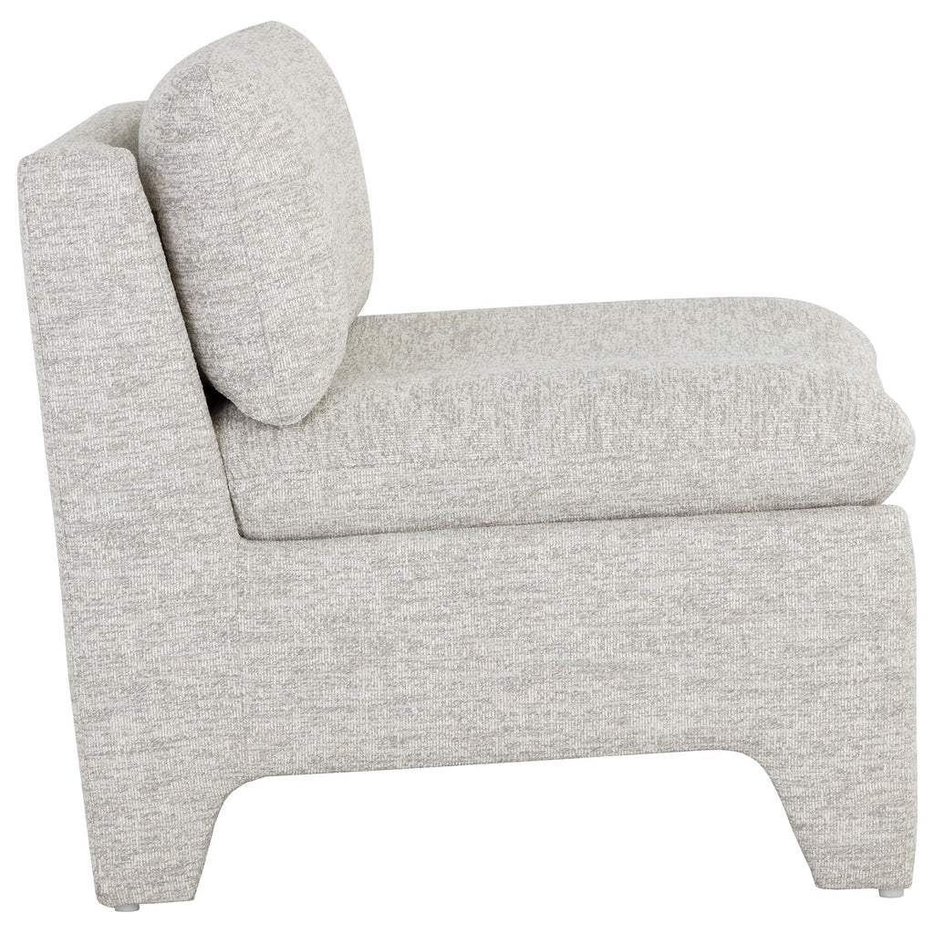 Designed to strike intrigue, this contemporary lounge chair features an eye-catching shape that will command attention. Stocked in boho oatmeal and sesame fabrics, and completed with fully upholstered legs.
