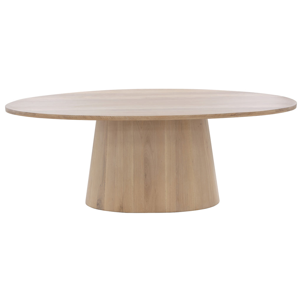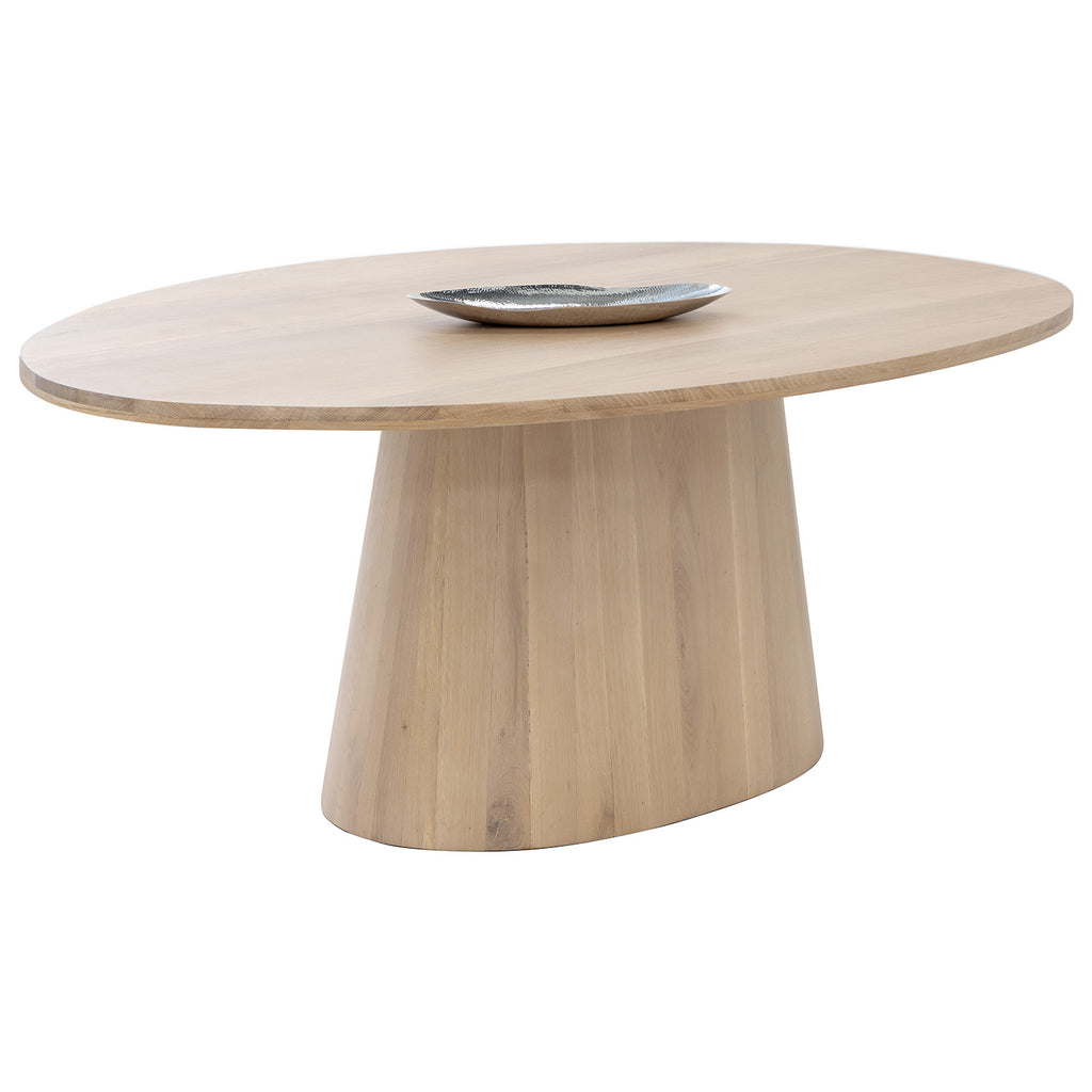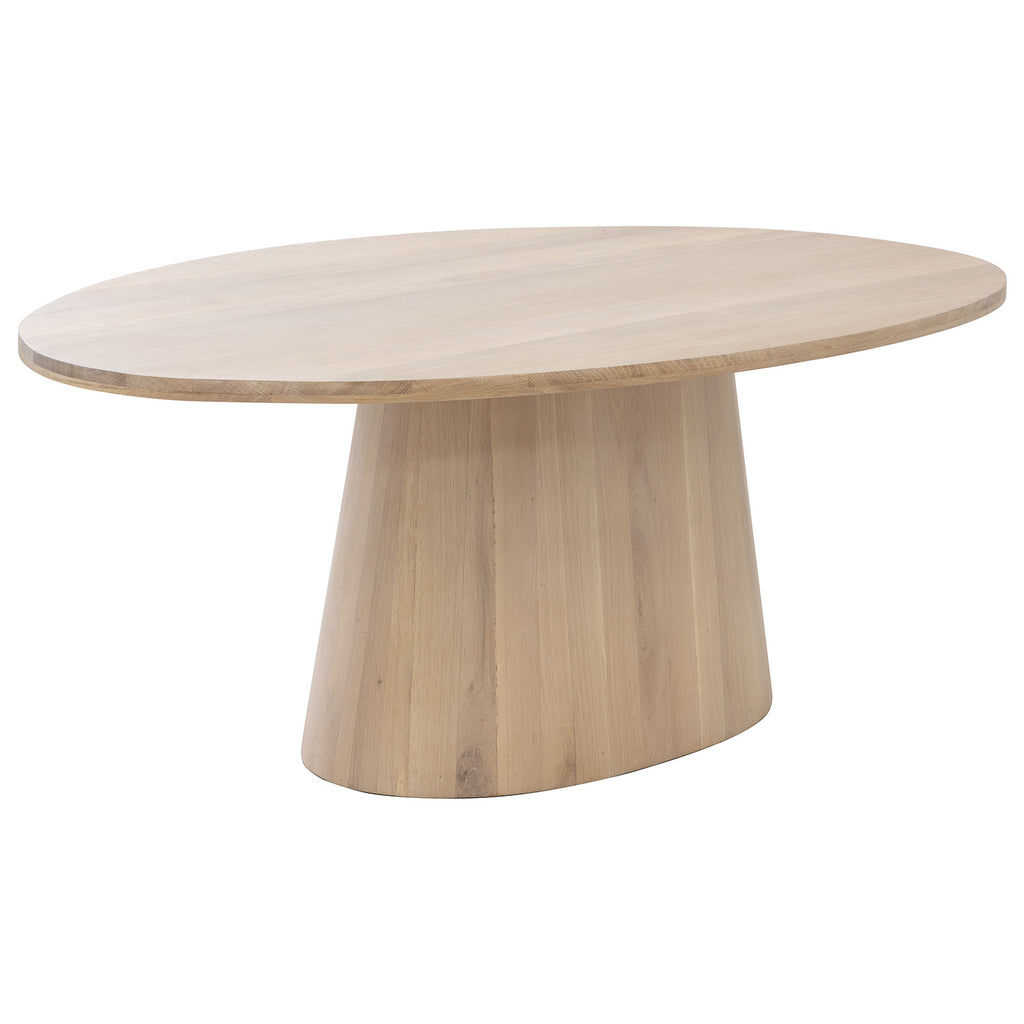 A classic, oval dining table that takes inspiration from modern mid-century designs, this Scandinavian-style table is a tasteful addition to any dining space. Made from natural solid oak wood with a whitewash finish.
