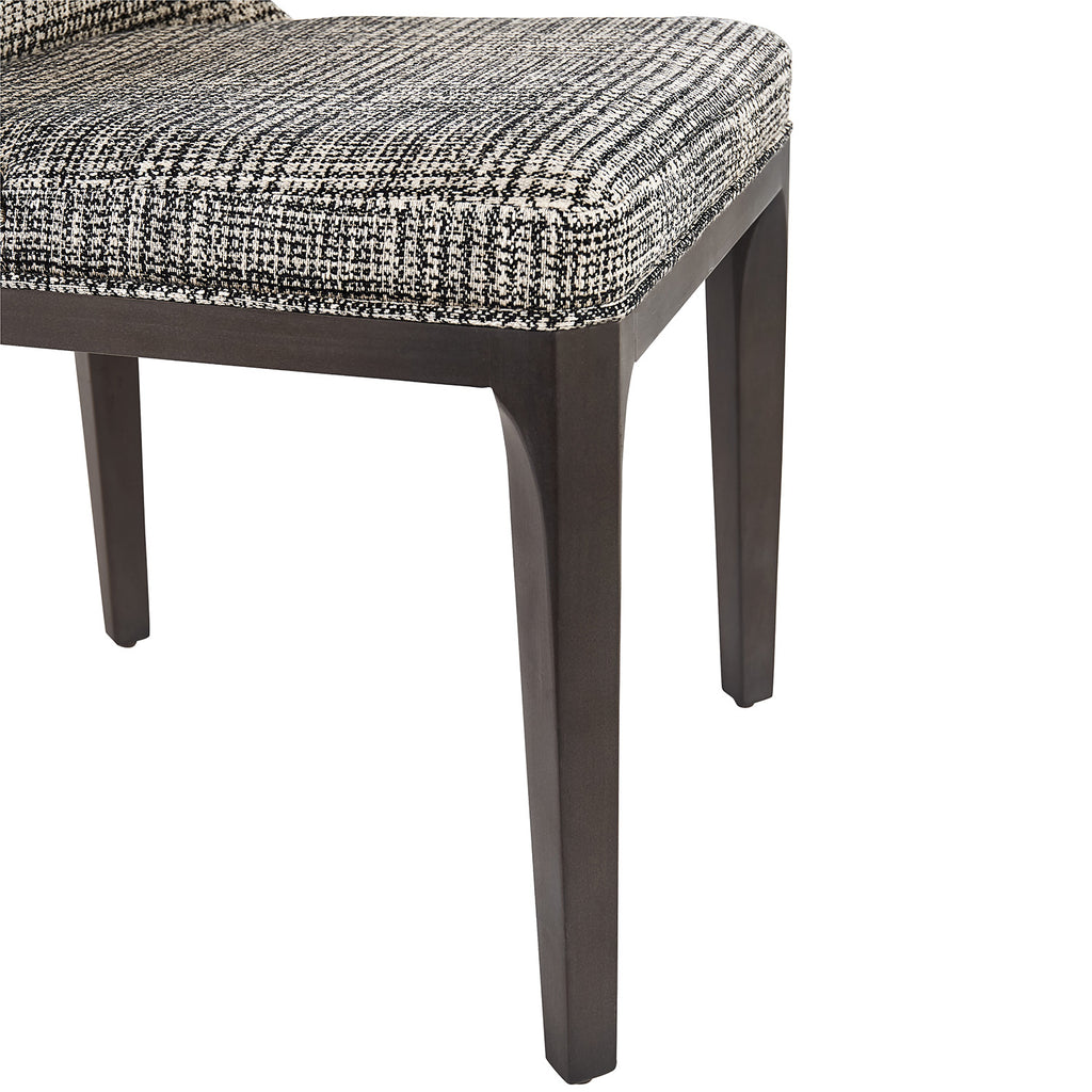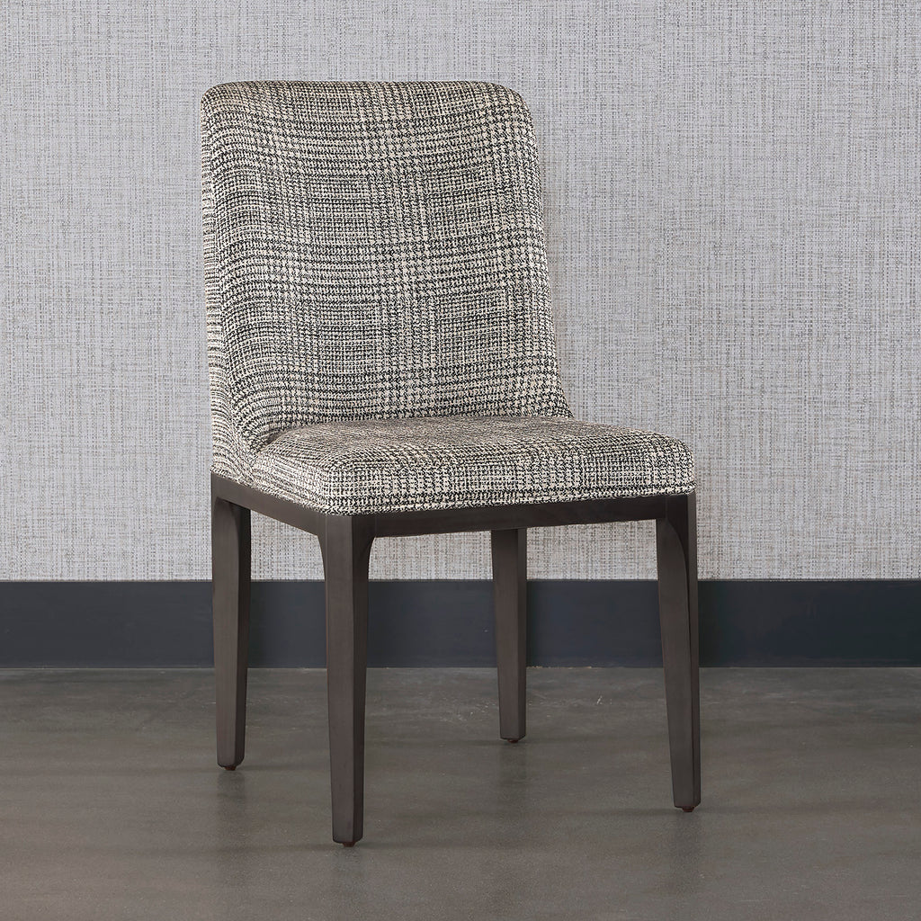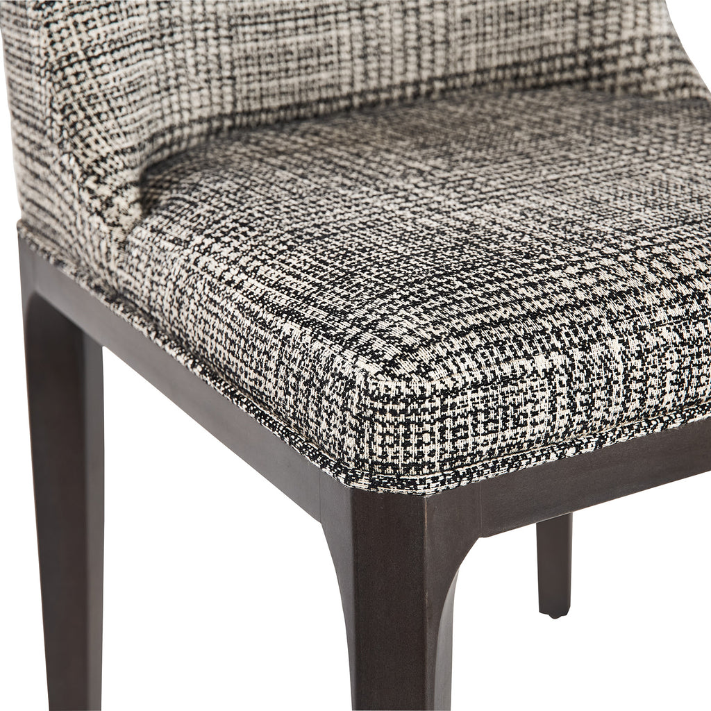 With a timeless design, this dining chair boasts a stunning mid-century appeal. Stocked in our beautiful dazzle cream or naya check black fabrics with solid poplar wood legs.