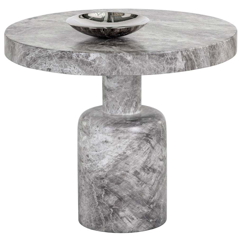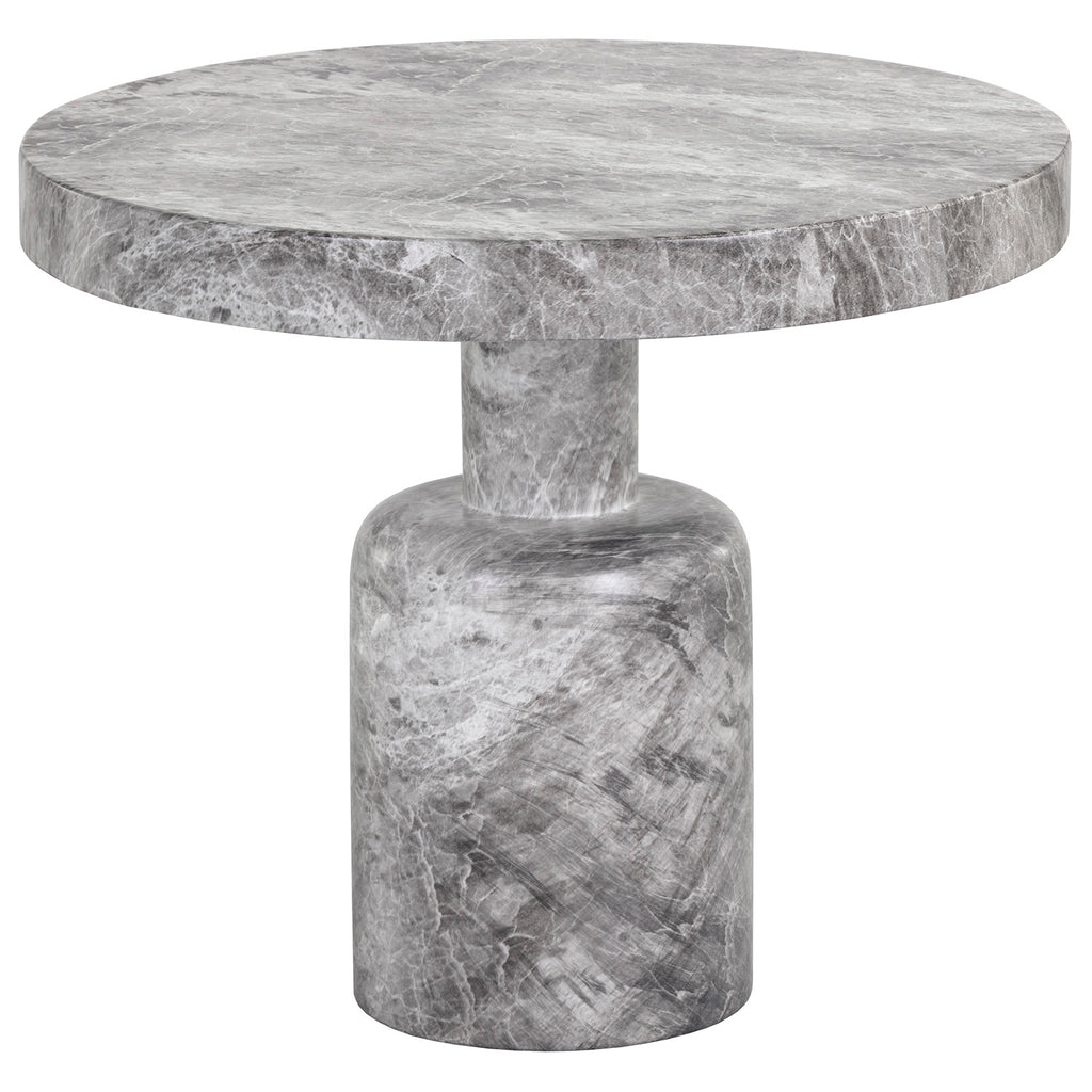 A classically chic end table with an elegant design. Featured a round table top with a curved tabletop base in matching grey faux marble finished Concrete.