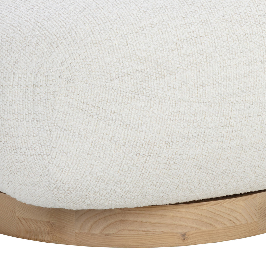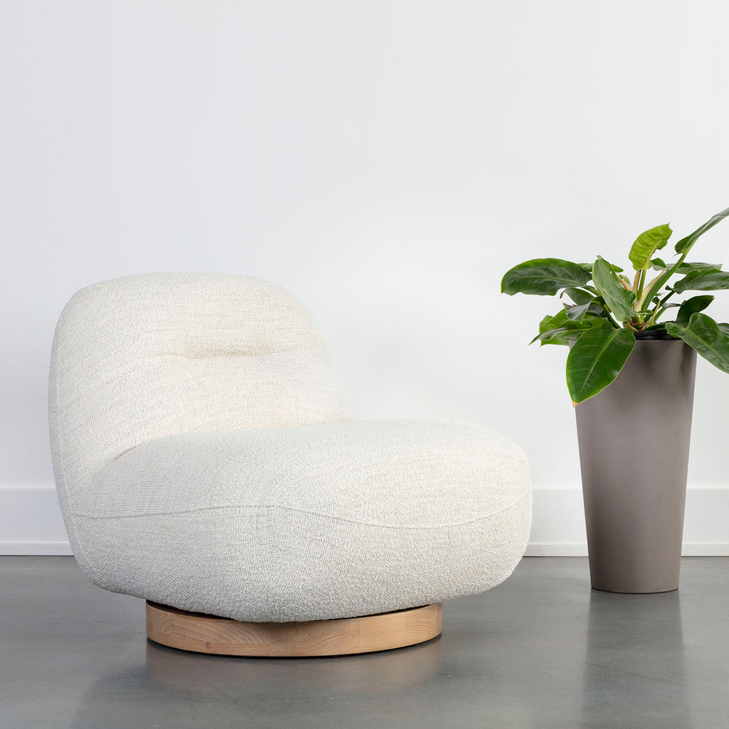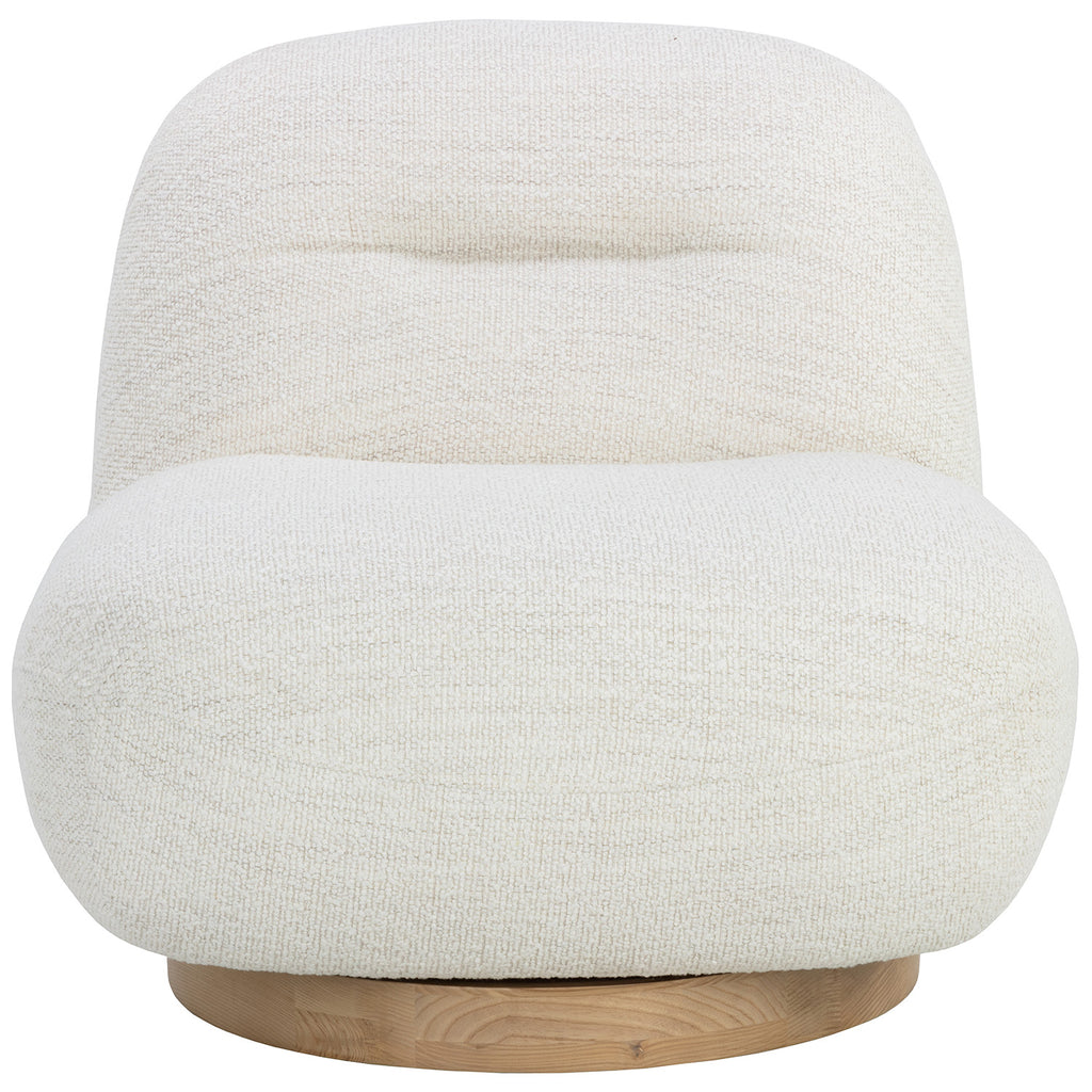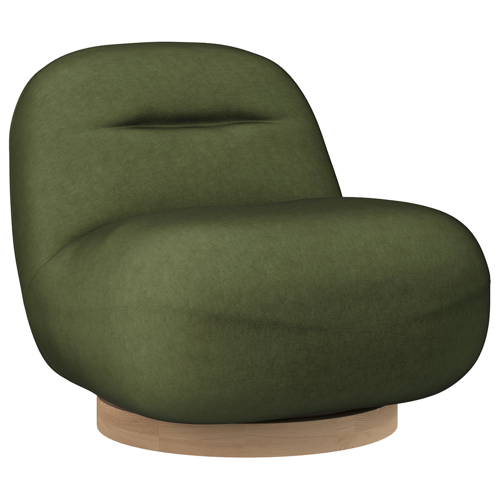 The Franze Swivel Lounge Chair exudes comfort and style. Features a minimalist silhouette upholstered in merino pearl or moss green performance fabric. A blonde ash wood base completes the look.